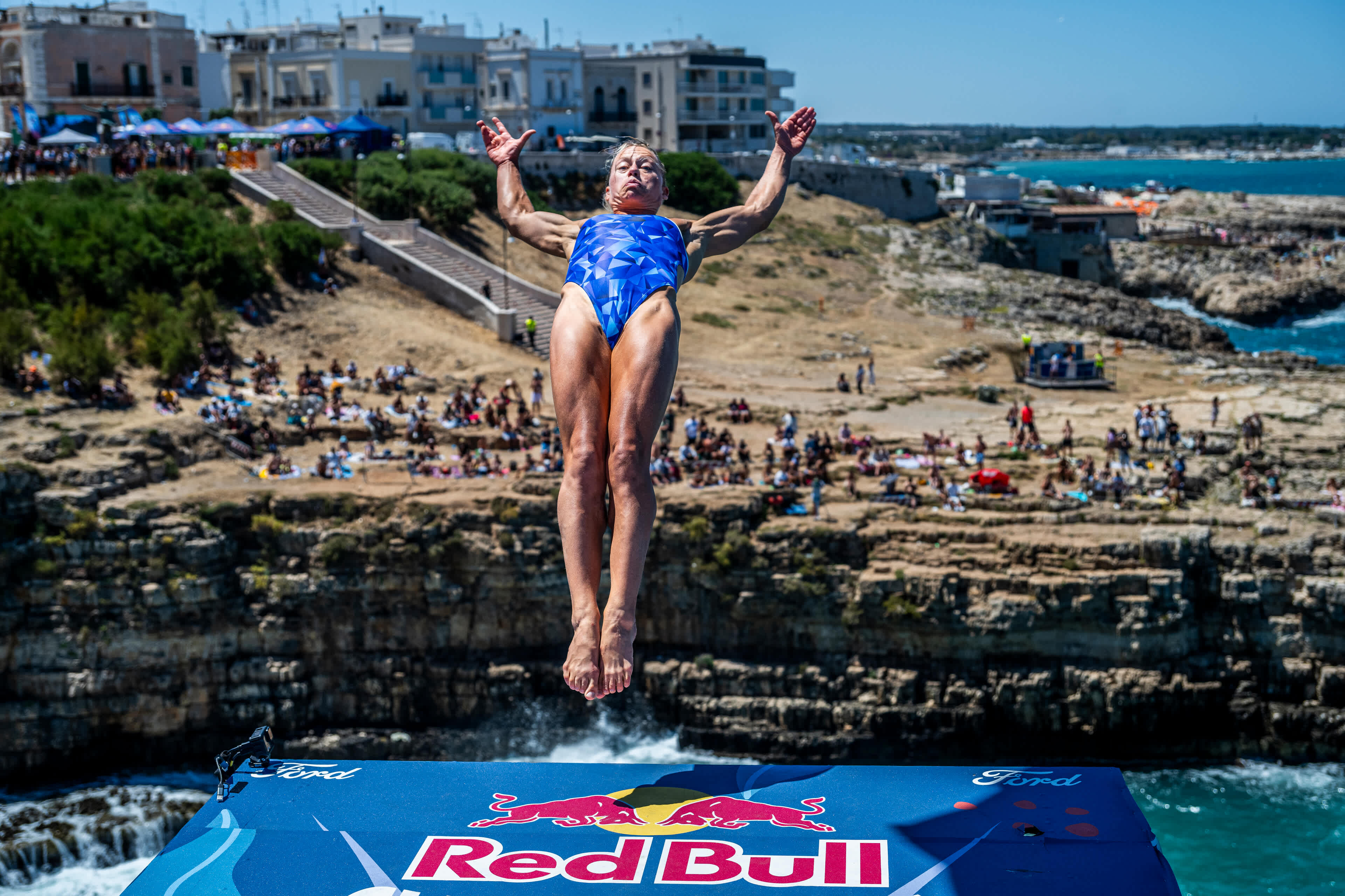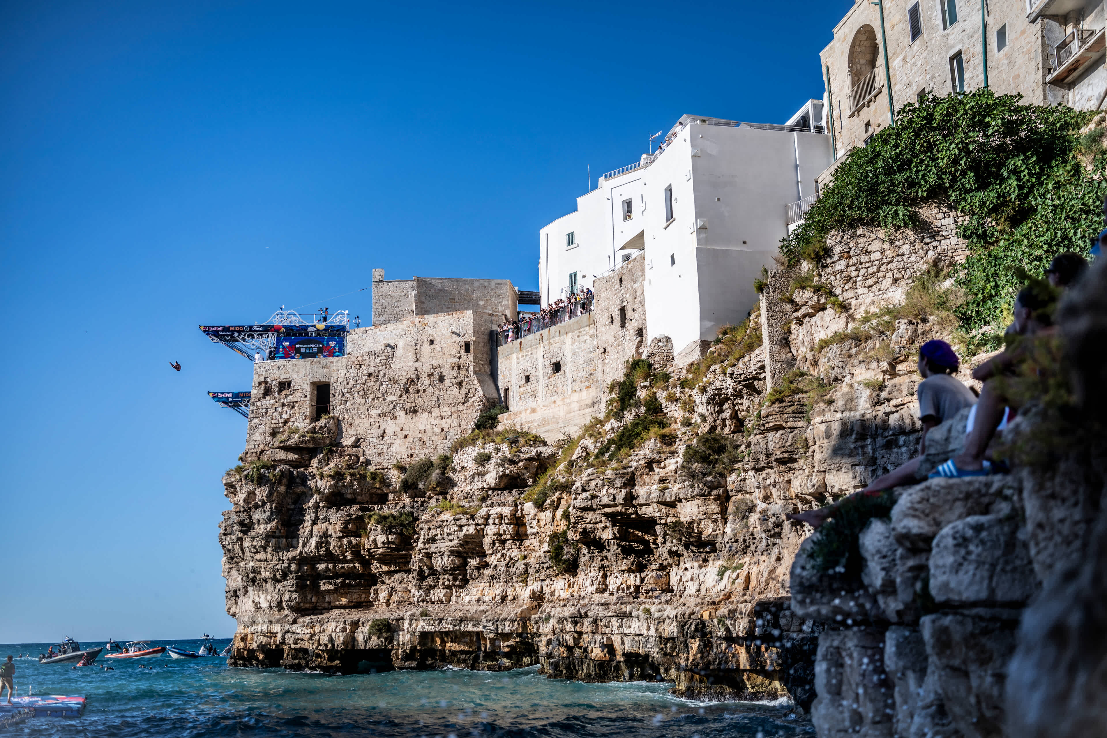 Day 2 brought the first round of Required Dives of the competition in Polignano a Mare. Despite the blazing sunshine and blue skies, 22kph winds and choppy waters continued to push the athletes to their limits.