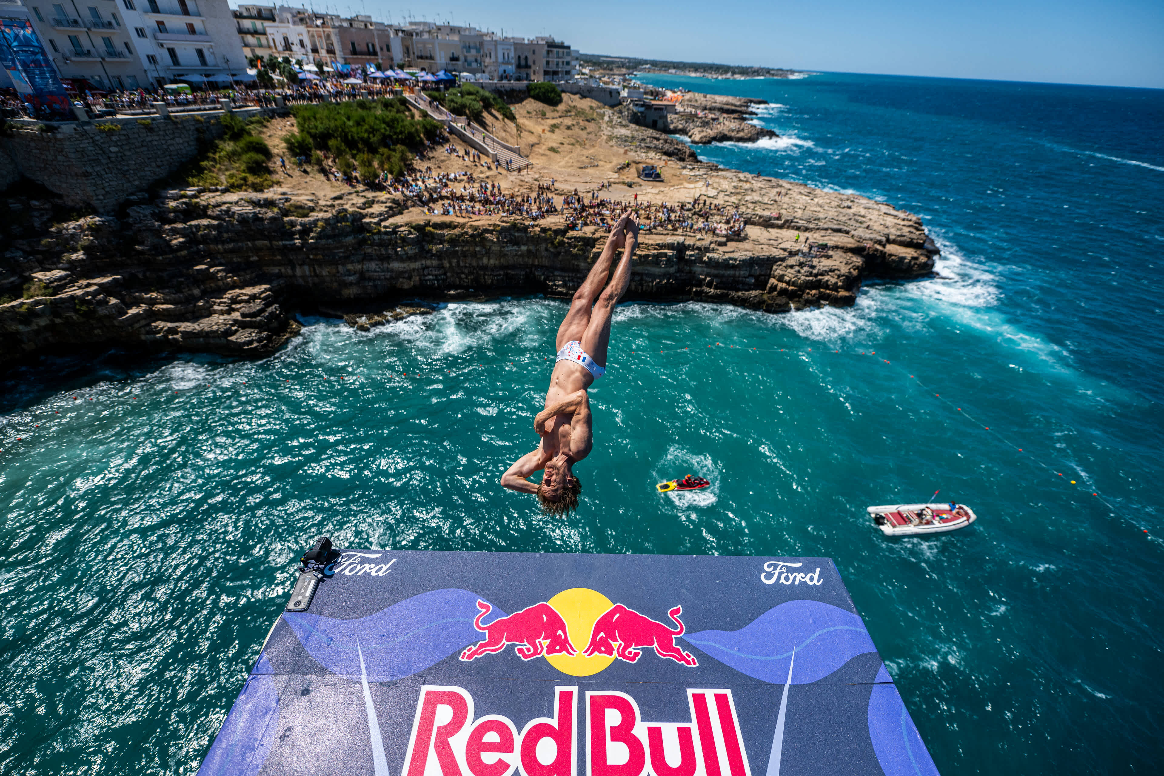 Perched on the rugged cliffs of Puglia, 24 of the world’s top divers faced fierce winds and unpredictable seas below. 35,000 fans lined the cliffs, rooftops, and balconies, fuelling every dive with a wave of noise and adrenaline. Against the picture-perfect backdrop of the Adriatic Sea, the world's best faced unforgiving conditions, launching from gusty platforms and a private balcony. Battling the elements, the divers chased perfection and podiums, and for one weekend turned Polignano’s dramatic coast into the ultimate stage for high-stakes aerial artistry.