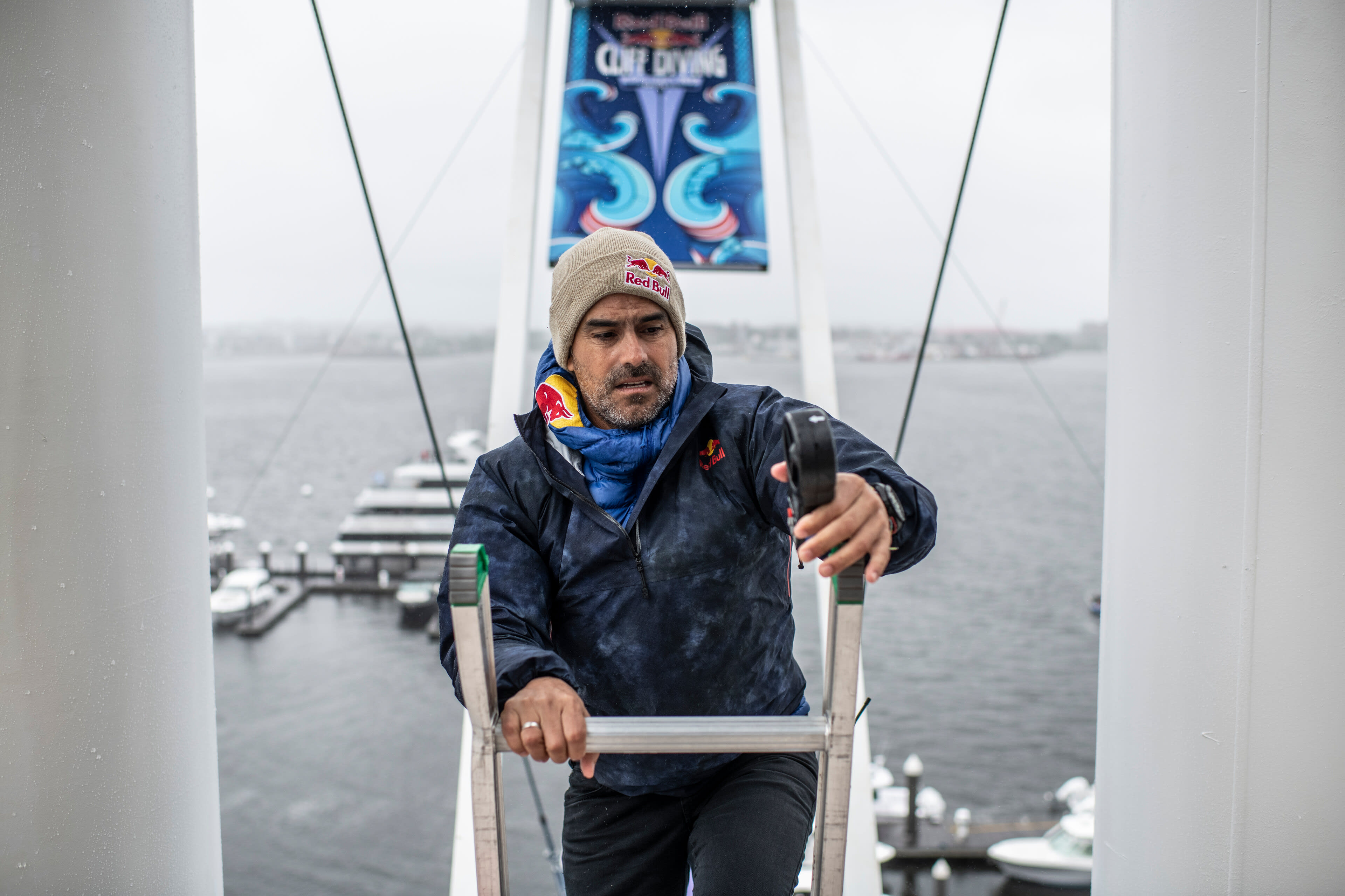 "Here in Boston we have the standard 21m and 27m platform, but we also have to deal with the tidal range. When it comes up to the high tide, we'll lose a bit of height between the water and the platform. Then when the tide goes back out, we then start to gain height, little by little," Red Bull Cliff Diving World Series sports director Orlando Duque explains.
