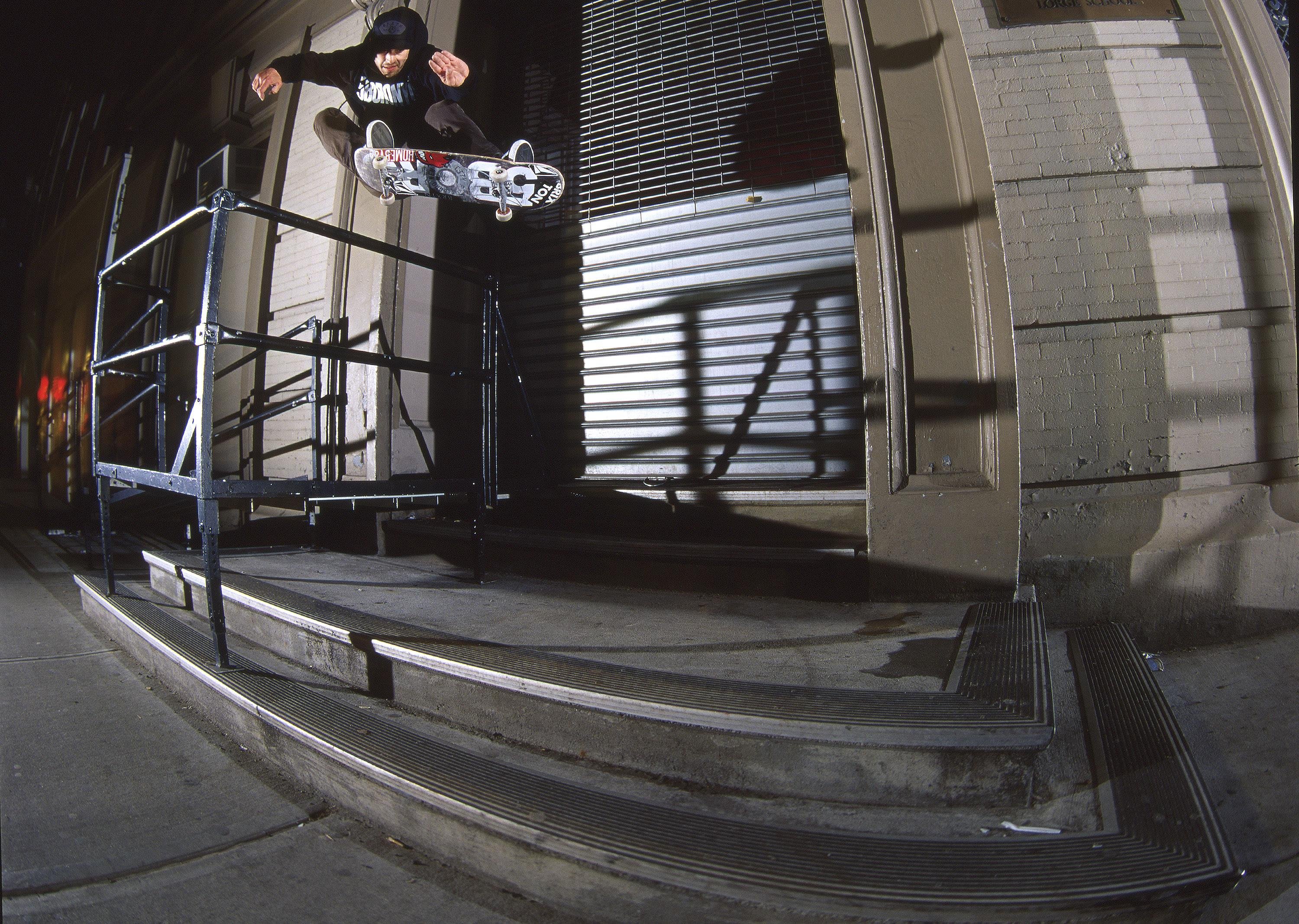 Allan "Ollie" Gelfand es la persona a la que debemos agradecer este movimiento icónico del skate. En 1976, descubrió por fin una forma de hacer aéreos sobre un monopatín sin tener que agarrar y sujetar la tabla con las manos mientras está en el aire. Sin embargo, también deberíamos dar las gracias a Rodney Mullen, porque fue él quien llevó el truco de Allan a un nivel completamente nuevo, bautizándolo como Ollie en honor de Gelfand y contribuyendo a que se convirtiera en una parte fundamental del skateboarding moderno.