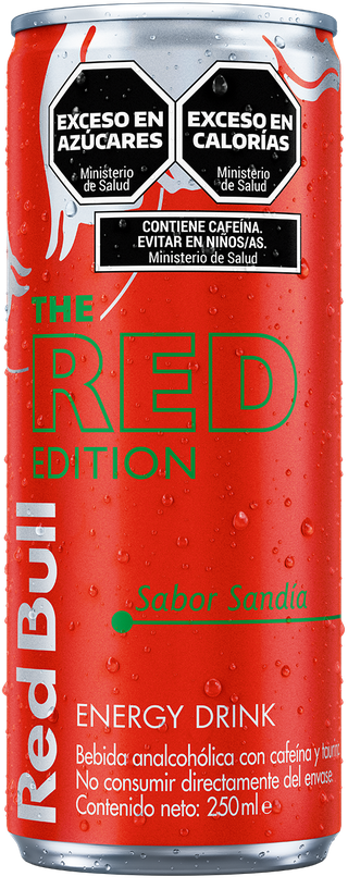 Cada lata de 250 ml de Red Bull Red Edition contiene 27 g de azúcares.