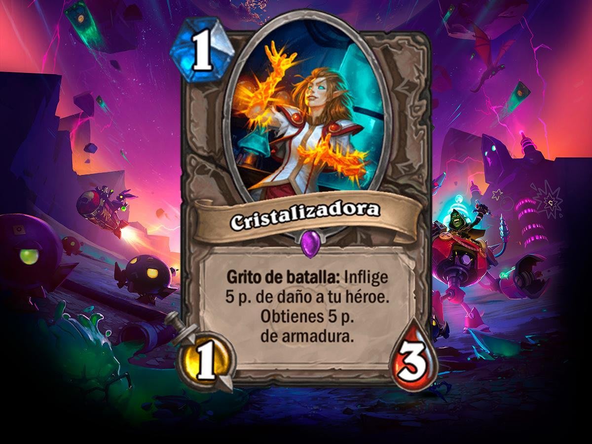 La Cristalizadora es el arma de doble filo, una carta de Brujo para todas las clases que trata de enmendar su error. Como salida no está nada mal, evitando los cinco puntos de daño con cinco de armadura. La salud se puede recuperar, y el escudo, en clases como el Guerrero, se puede utilizar para dañar al rival.