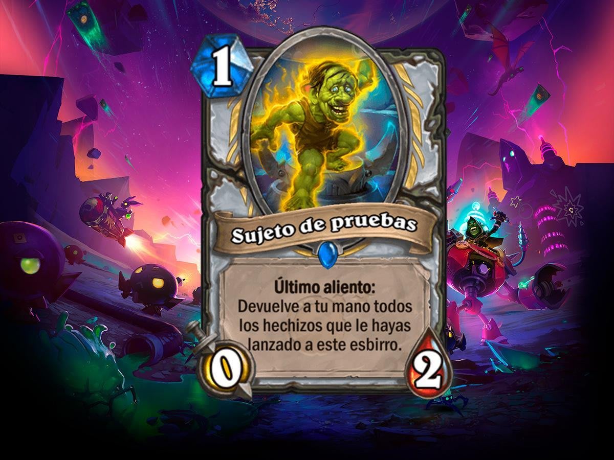 Este gnomo se ha convertido en una auténtica revolución en las barajas de Sacerdote, dando vida a uno de los combos letales que más se juegan. Sujeto de pruebas, por sí solo, no es nada, pero combinado con las buenas cartas es una victoria asegurada. Espíritu divino, con la que duplicamos la salud, y Patas arriba, una nueva carta que cambia la el ataque por la salud, son las principales cartas del combo, pero también requiere de Pesadilla vívida, Elemental radiante y Jabalí colmillopétreo si queremos ganar un turno. El combo, a grandes rasgos, se resume en obtener varios cuatro Espíritu divino suicidan a la copia del Sujeto de pruebas que generamos con Pesadilla vívida, para hinchar el Jabalí y ganar de un golpe.
