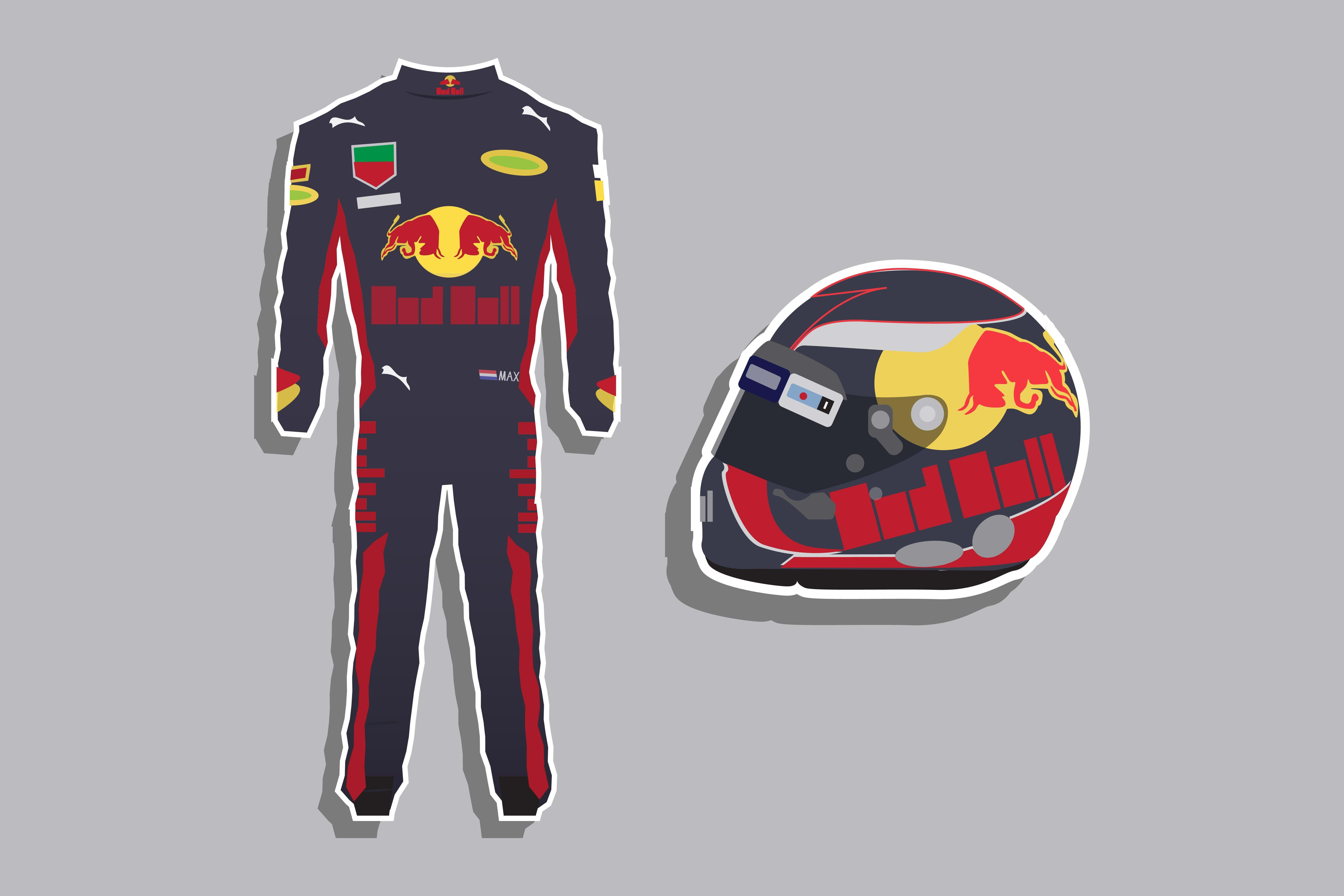 El atuendo de Max Verstappen para las carreras de 2018 es el típico mono que utilizan todos los pilotos e integrantes de los equipos en boxes en la edad contemporánea. La FIA ordenó en 1994 que los trabajadores de boxes también debían regirse por las reglas que los pilotos. Sin embargo, el reto de los últimos años ha sido maximizar tanto la seguridad como la comodidad.