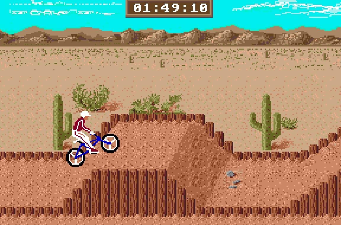 Ya mencionamos California Games cuando enumeramos nuestros mejores juegos de surf, y aquí está de nuevo en nuestra lista de nuestros mejores juegos de BMX -¡es casi como si fuera el juego perfecto de Red Bull!-. En la sección BMX de California Games, los jugadores debían superar un recorrido repleto de obstáculos lo más rápido posible. No solo se ganaban puntos por ser los más rápidos, sino también por cada truco que el jugador realizara durante la carrera. Estos iban desde simples trucos de agarre hasta volteretas hacia adelante y hacia atrás. Si te caías, podías levantarte y seguir adelante, pero si lo hacías de cabeza, se acabó el juego.