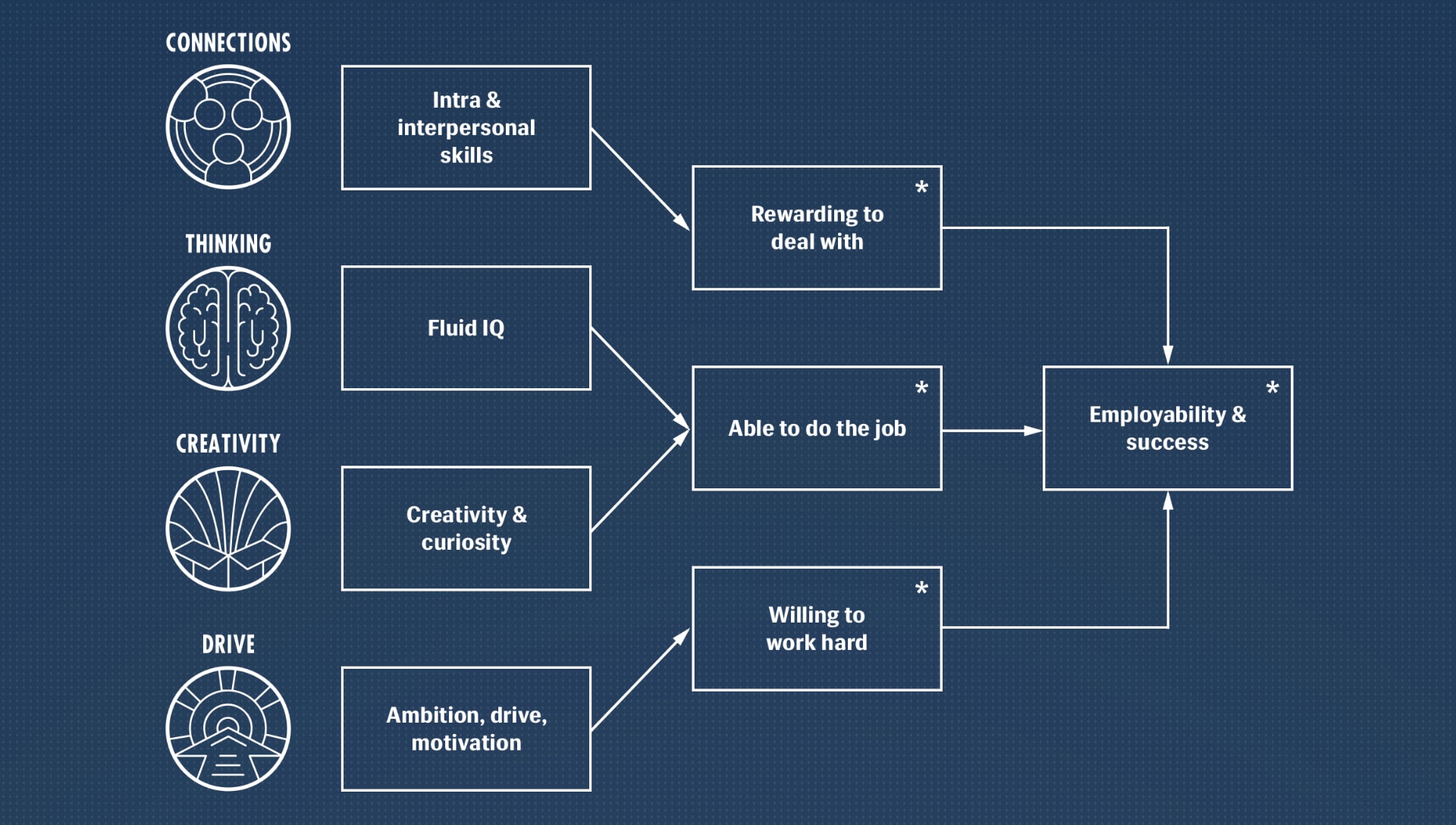 Esta es la cantidad de tiempo que ha hecho falta para desarrollar el Red Bull Wingfinder. Nada menos que 30 años de investigación psicológica a lo largo de miles de estudios basados en las cuatro áreas que más influyen a la hora de encontrar empleo y alcanzar el éxito profesional.