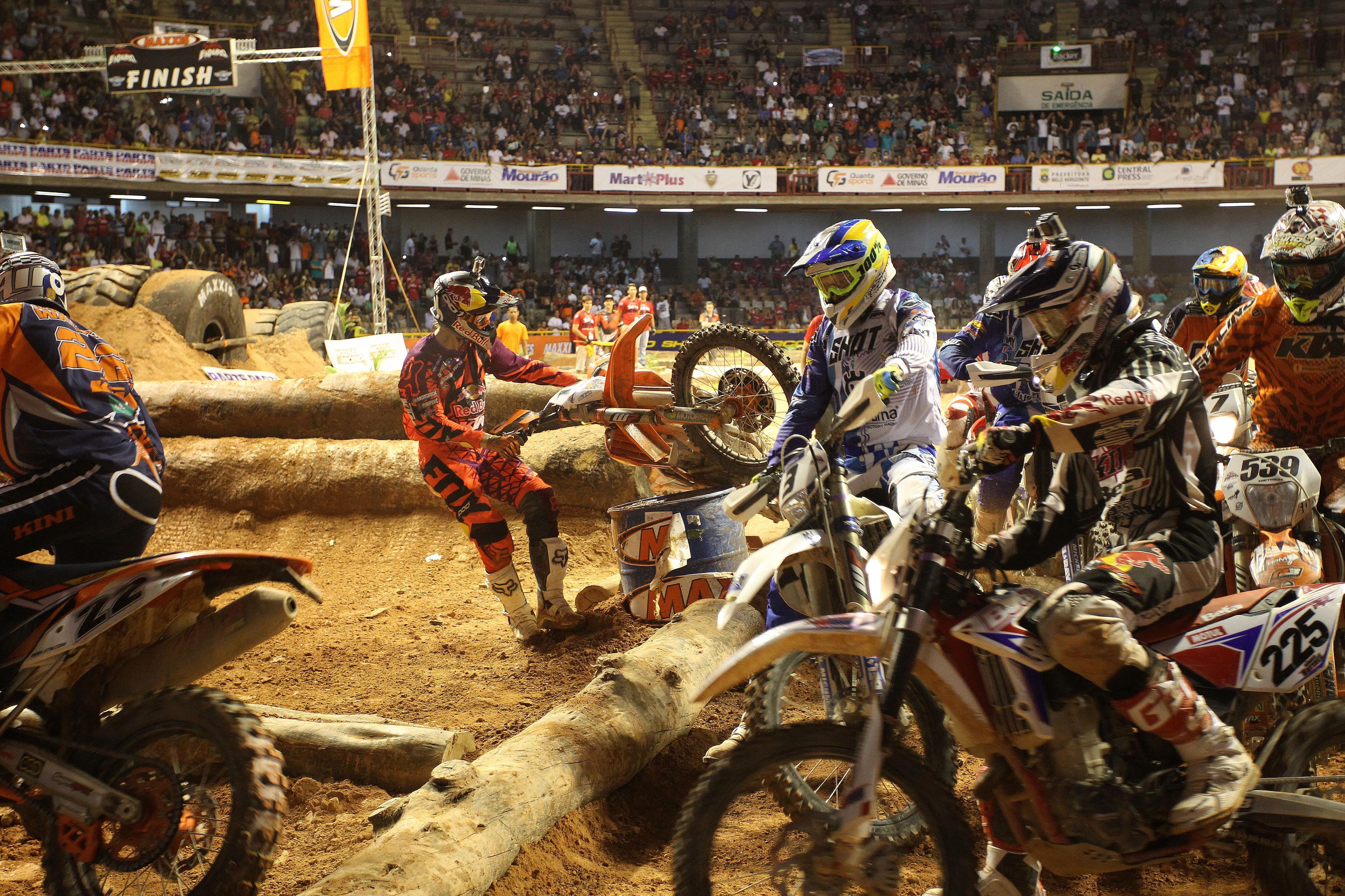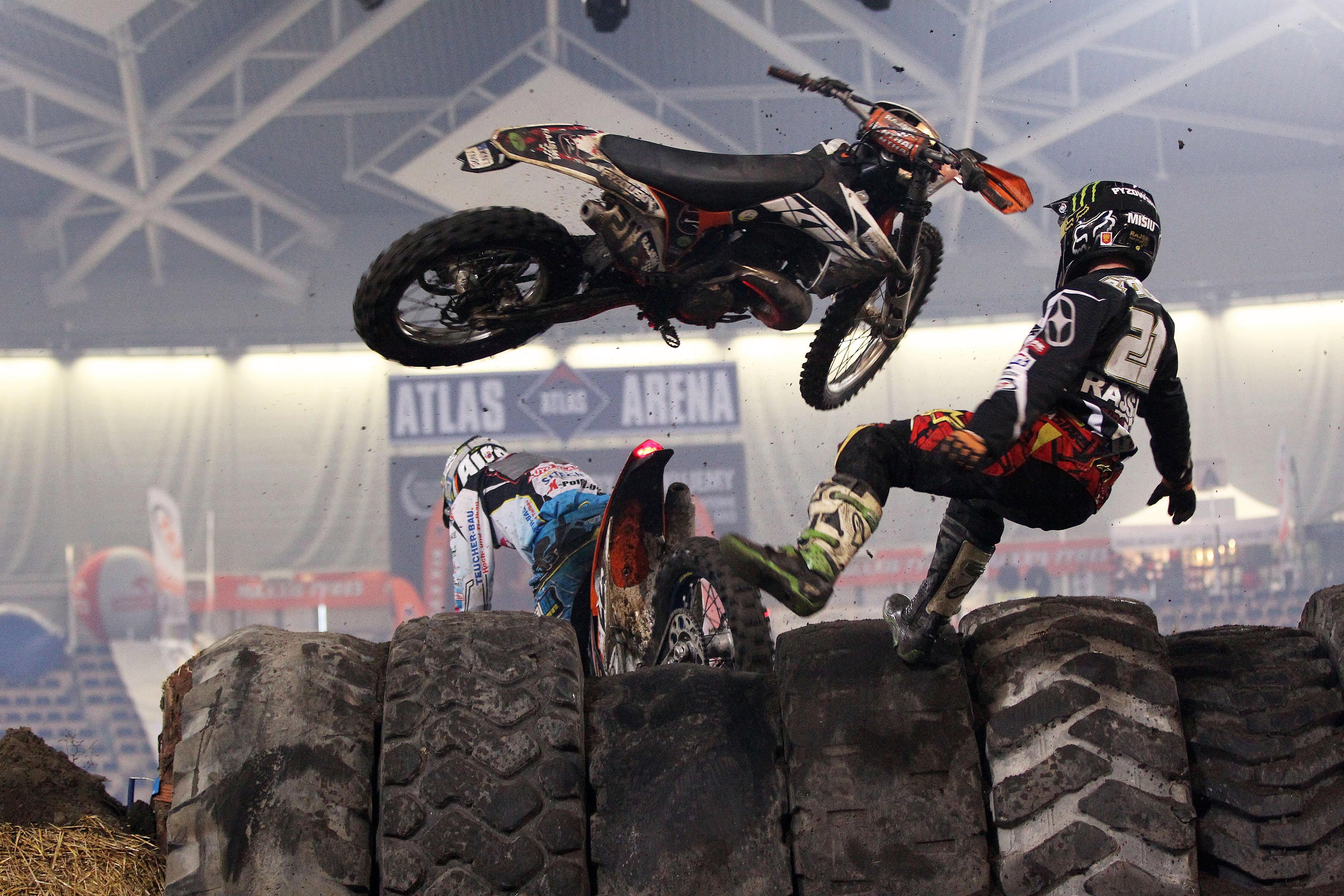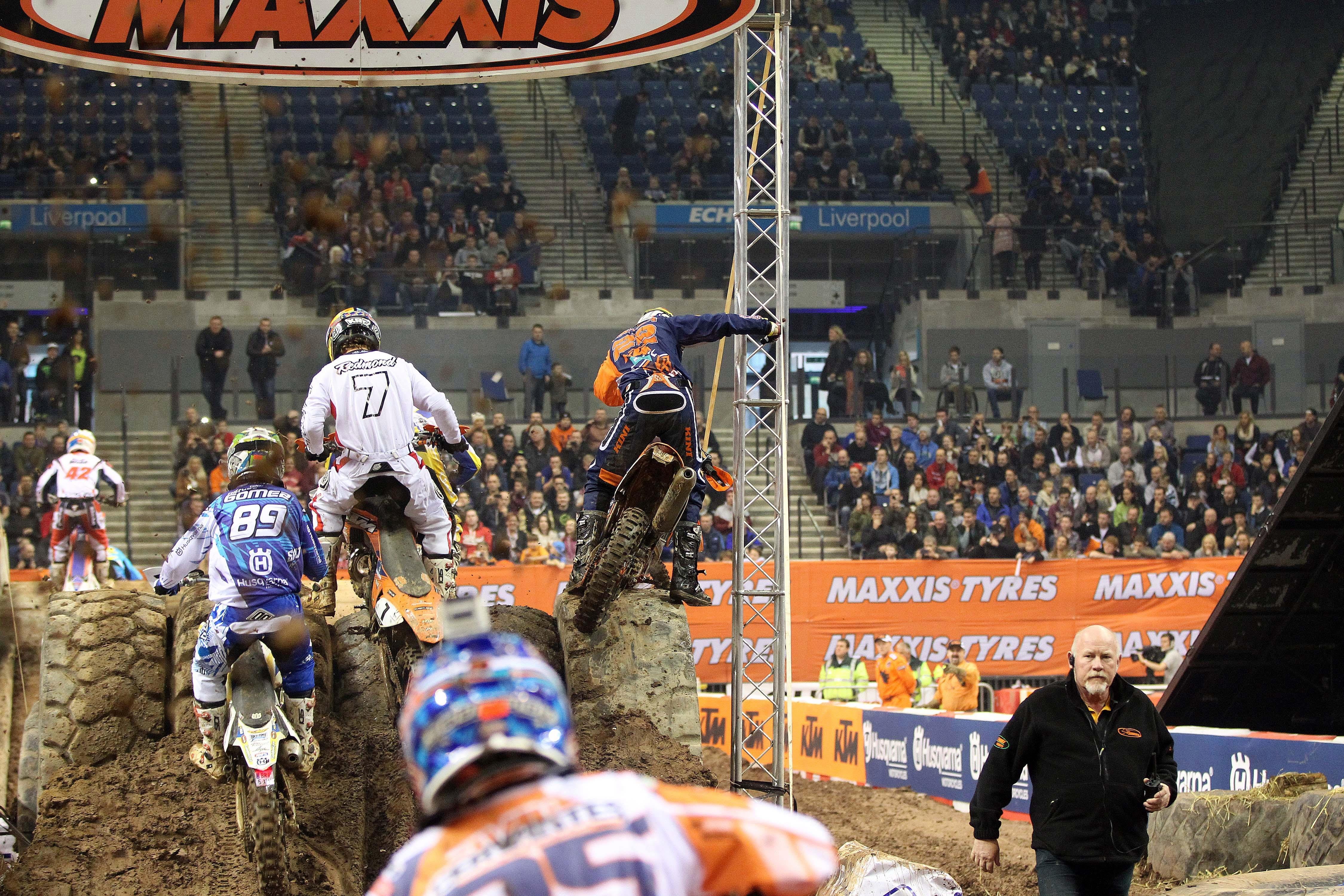 Wenn man die 16 weltbesten SuperEnduro-Rider auf eine in eine Arena gepresste Rennstrecke loslässt, sind Unfälle unausweichlich. Jeder will den anderen von seinem Platz drängen, niemand will auch nur einen Millimeter verschenken, also kommt es regelmäßig zu harten Gefechten.