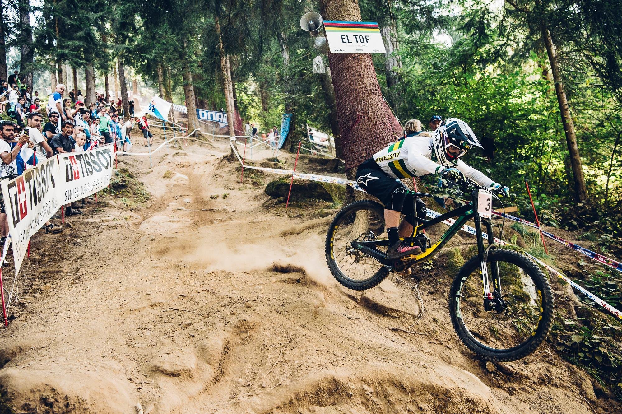 Da Myriam Nicole aufgrund einer Verletzung einen Großteil der Saison verpasste, musste sie relativ früh den Berg runter (die Reihenfolge der World Champs basiert auf dem UCI World Ranking). Sie setzte sich mit ganzen 25 Sekunden vom restlichen Feld ab und durfte es sich das ganze restliche Rennen im Hot-Seat bequem machen, bis Rachel Atherton das Starthaus verließ.