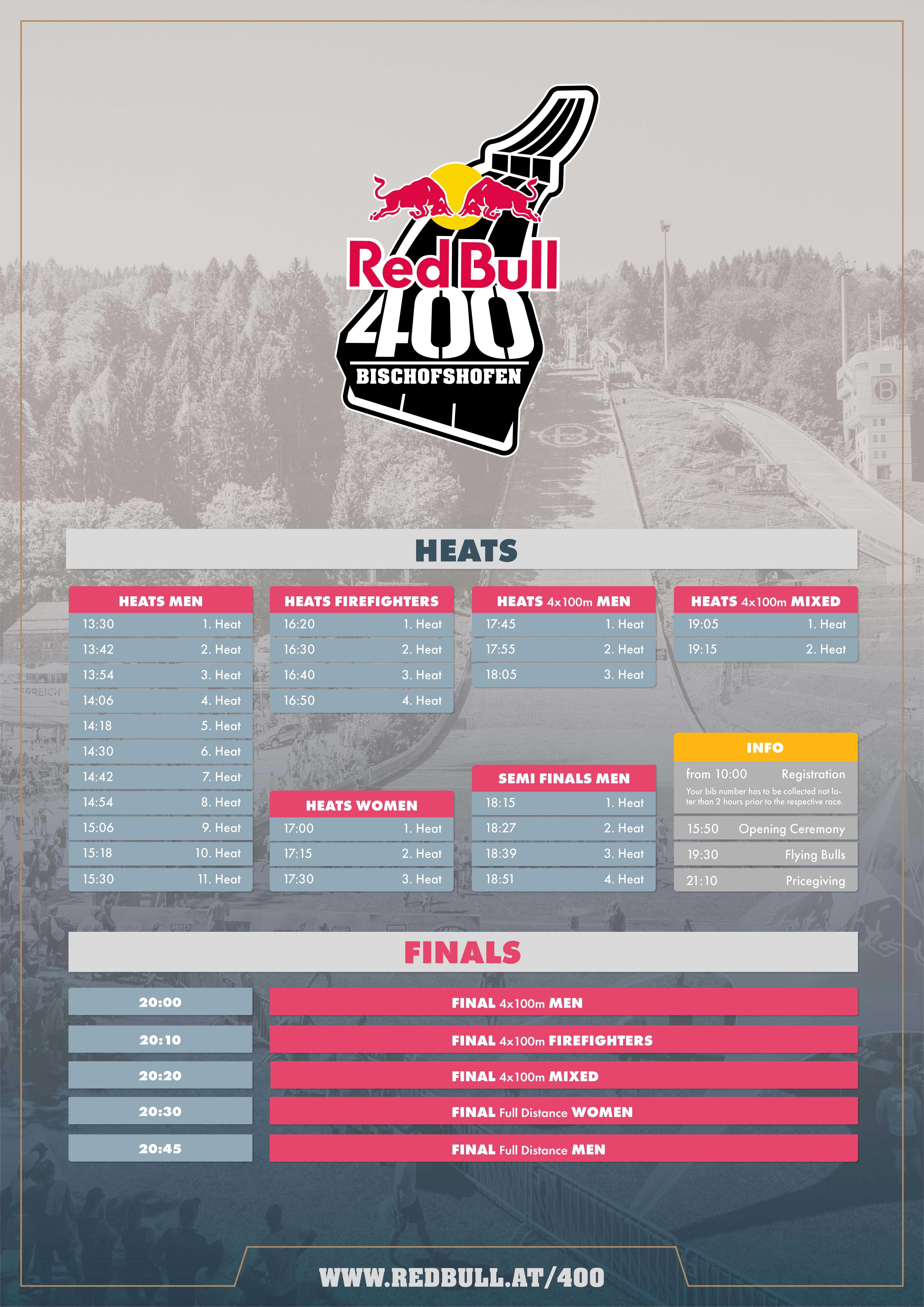 140m elevation gain with only 400m track lengh. From the run-out until the top – without detours, no-holds-barred. Be part of this unique event and challenge yourself, either in the full distance discipline or as part of a relay team. This will be the 400 toughest meters of your life!
