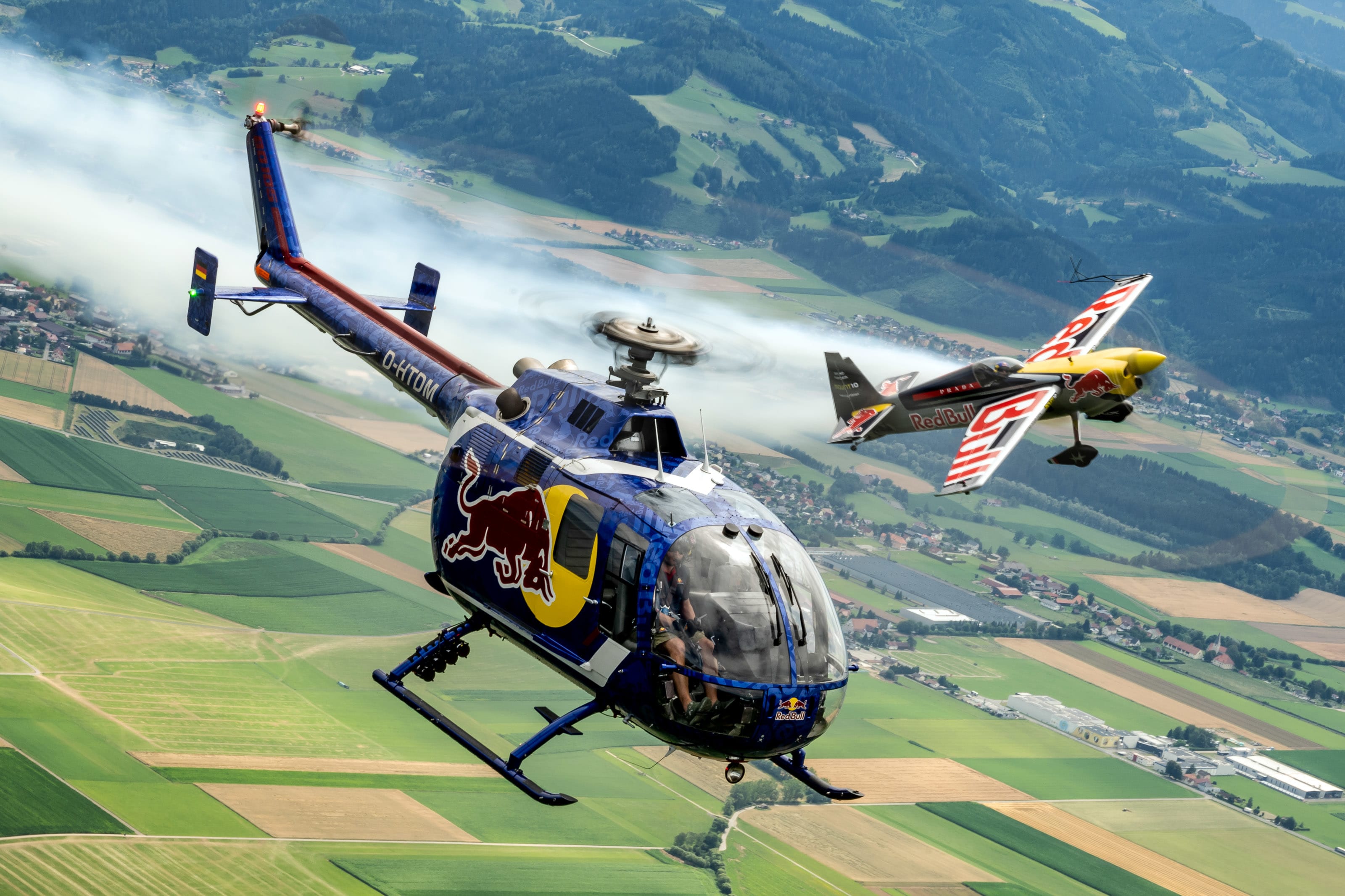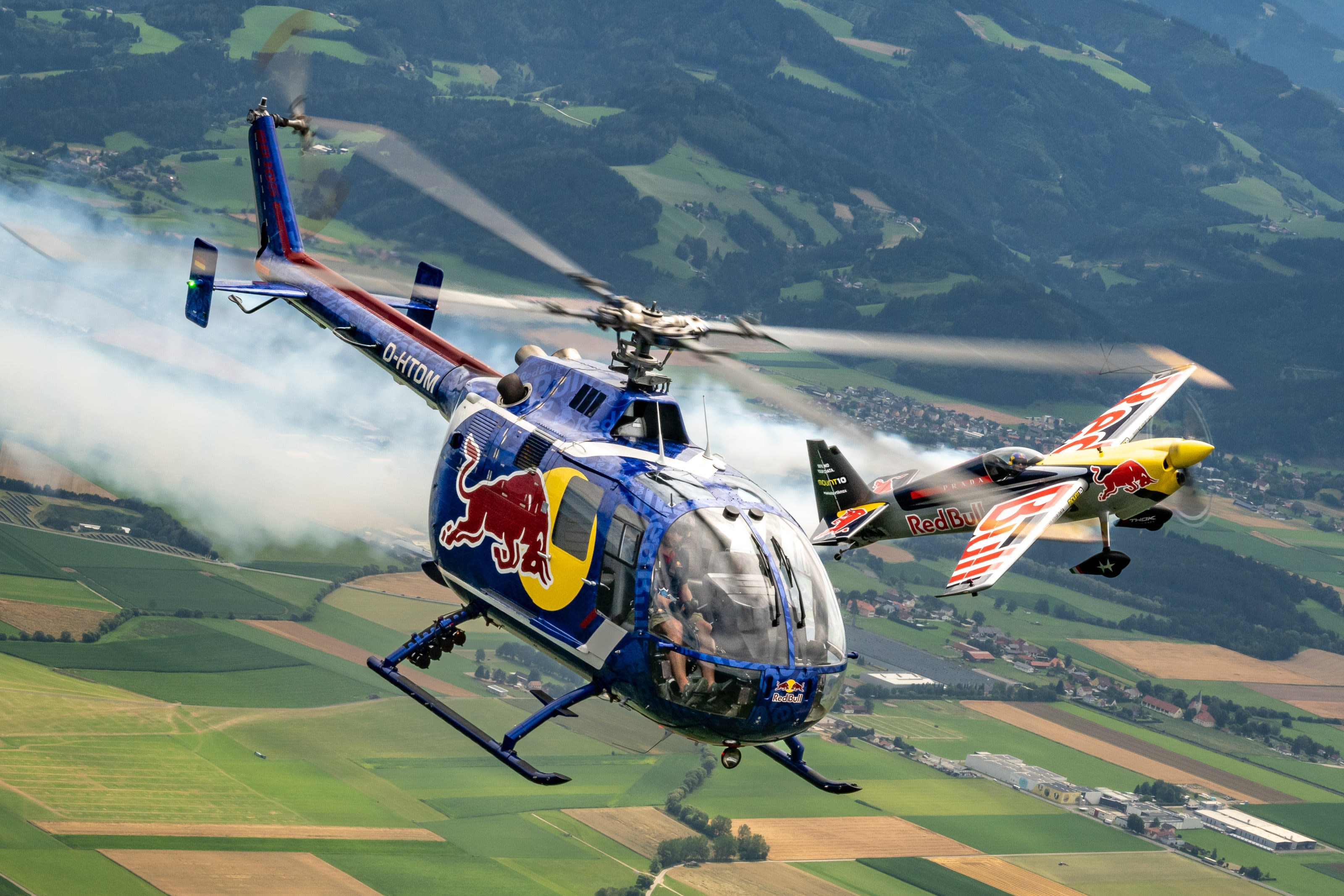 „Wir sind vor ein paar Jahren zusammengesessen und haben überlegt, wie wir eine Kunstflug-Nummer kreieren könnten, in der eben alle diese Elemente vorkommen. Das Resultat ist das Red Bull Aerobatic Triple. Teamwork ist dabei der wichtigste Faktor“, sagt Flying Bulls Helikopter-Chefpilot Siegfried „Blacky“ Schwarz, der die Cobra steuert.