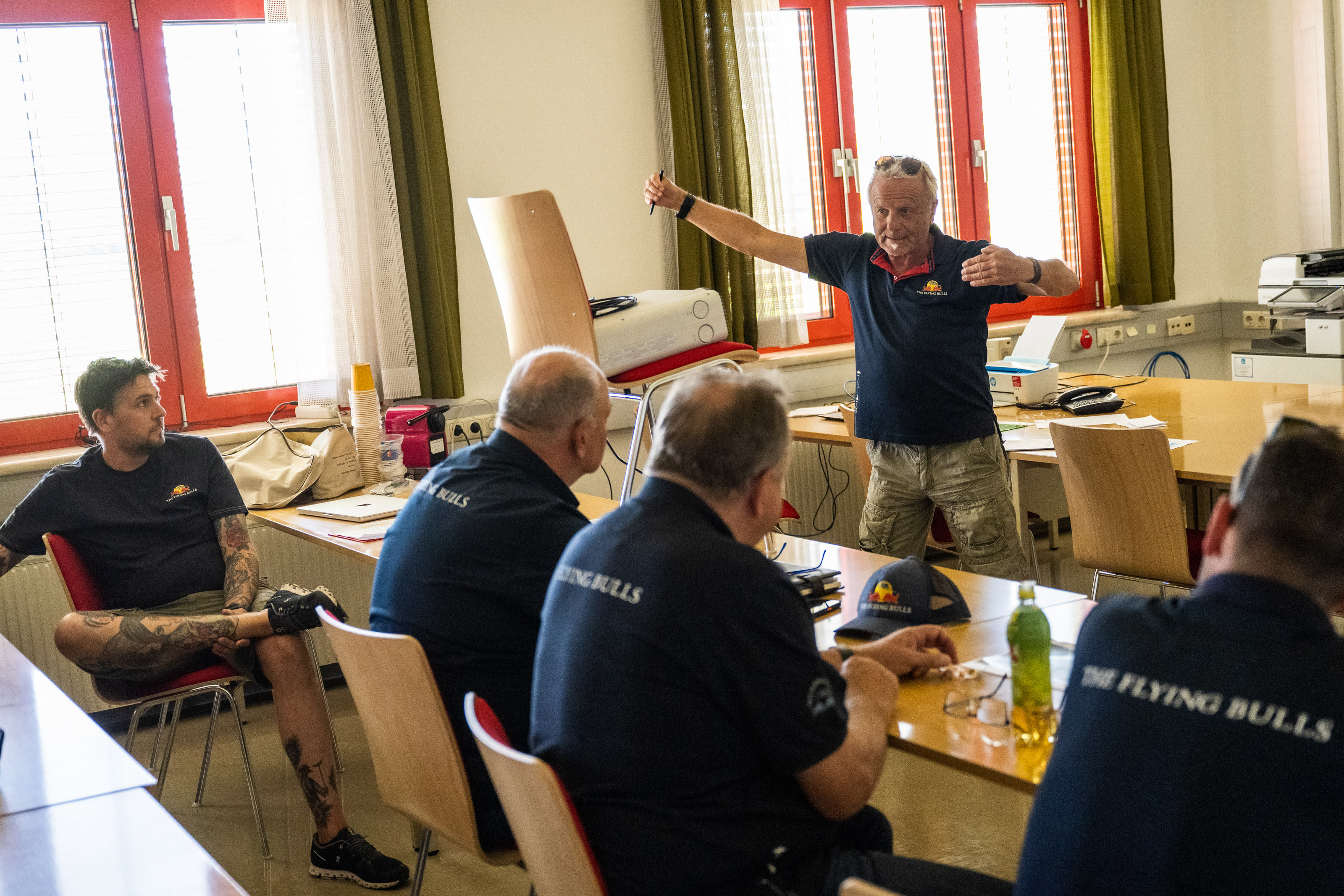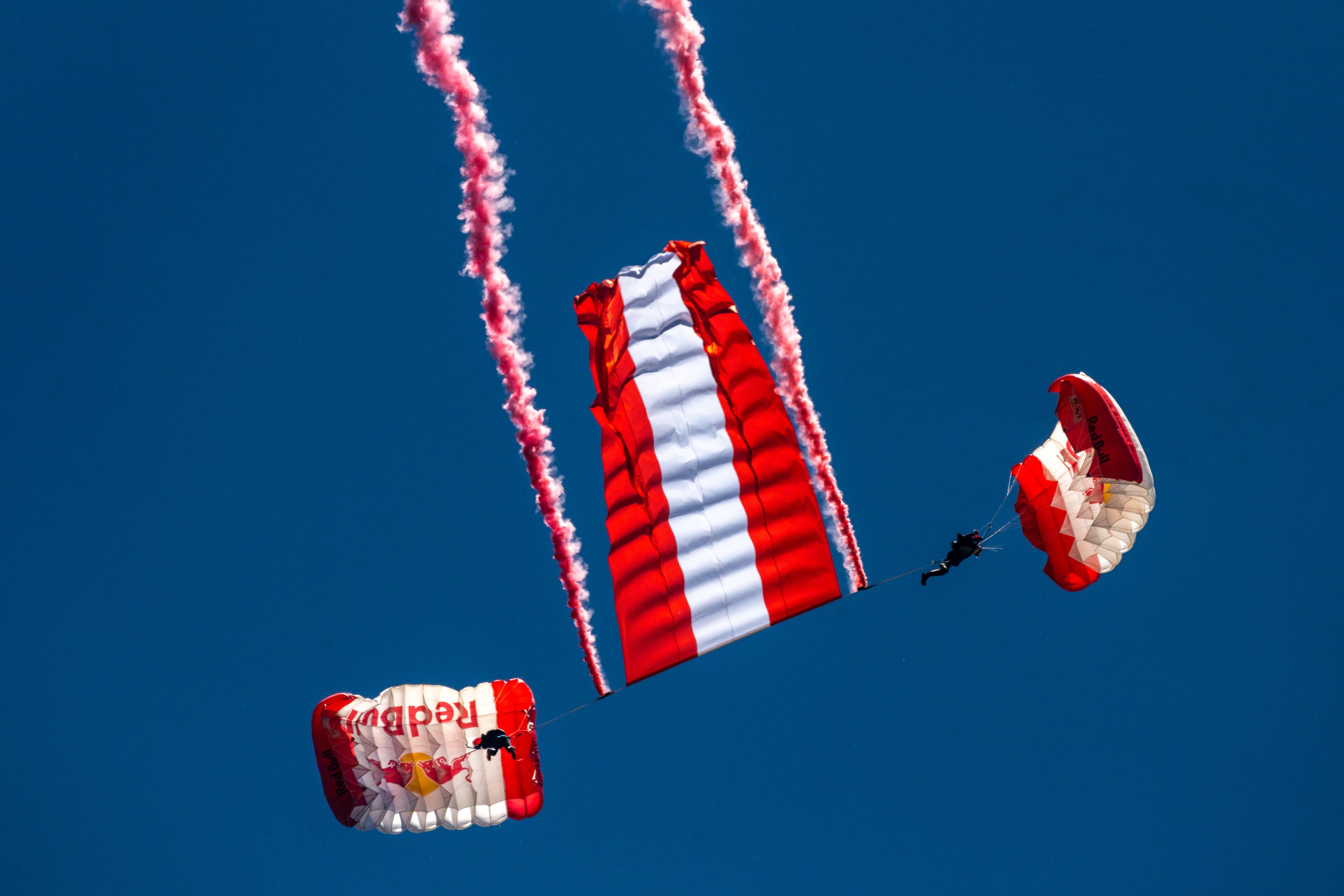 „Man kann sich das wie ein Orchester vorstellen, das eine schwierige Partitur spielt. Alle Einsätze der Piloten und Springer müssen perfekt aufeinander abgestimmt sein, denn es geht wirklich um Bruchteile von Sekunden, wenn vom Boden alles so ausschauen soll, wie wir es geplant haben“, sagt Mirko Flaim, der das Red Bull Aerobatic Triple mit erfunden hat. Das Red Bull Aerobatic Triple wird an beiden Tagen der AIRPOWER22, die am 2. und 3. September 2022 stattfindet, zu sehen sein. Trainiert wurde in mehreren Sessions in Zeltweg und im slowenischen Maribor.