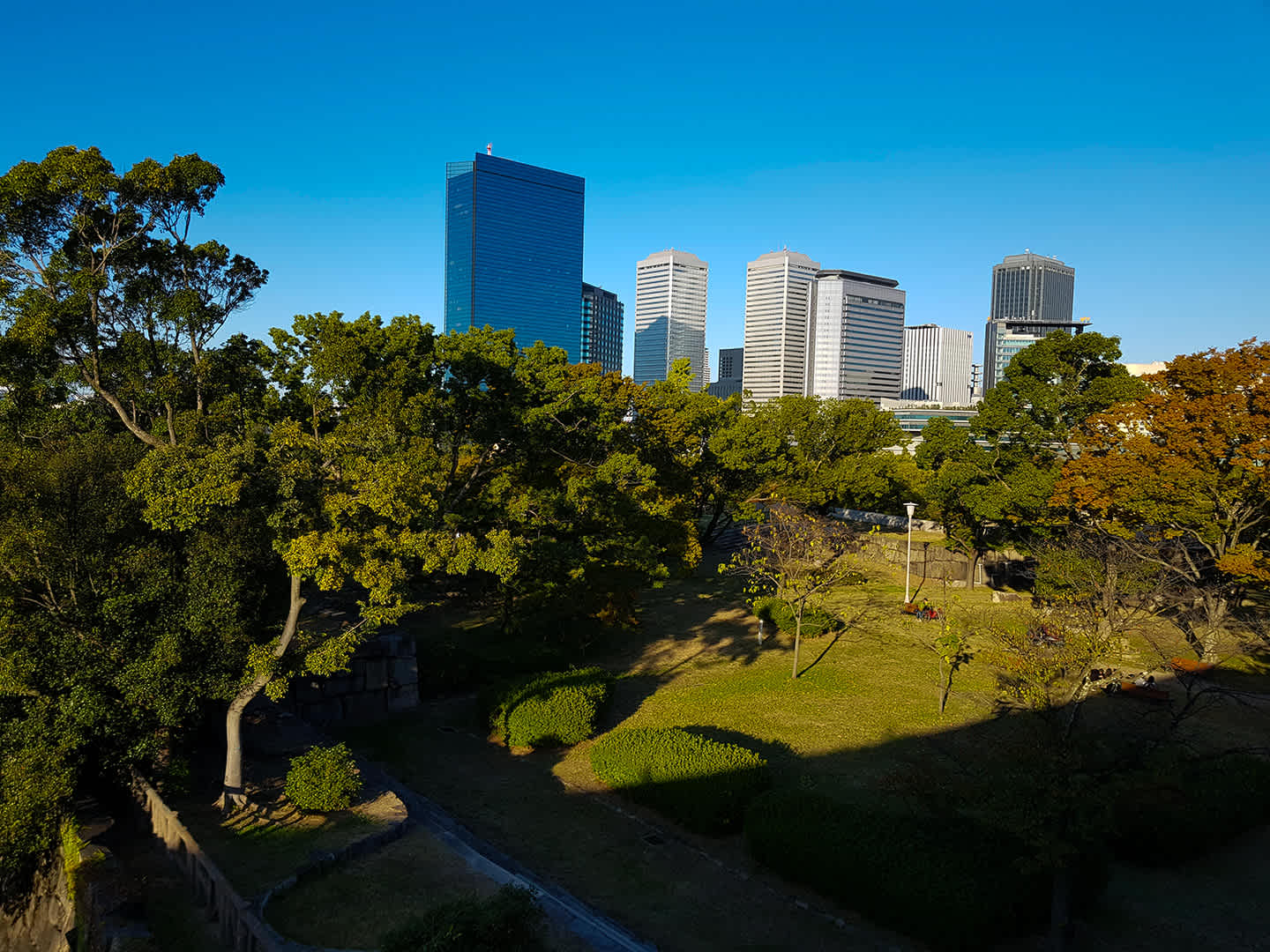 Wer in der echten Welt die Burg Osaka besucht, wird vor allem Freude an den Anlagen haben, welche sich um den Burggraben erstrecken. Oft sind es solche Schlossgärten, die bei einem Besuch der restaurierten Japan-Burgen echte Highlights darstellen.