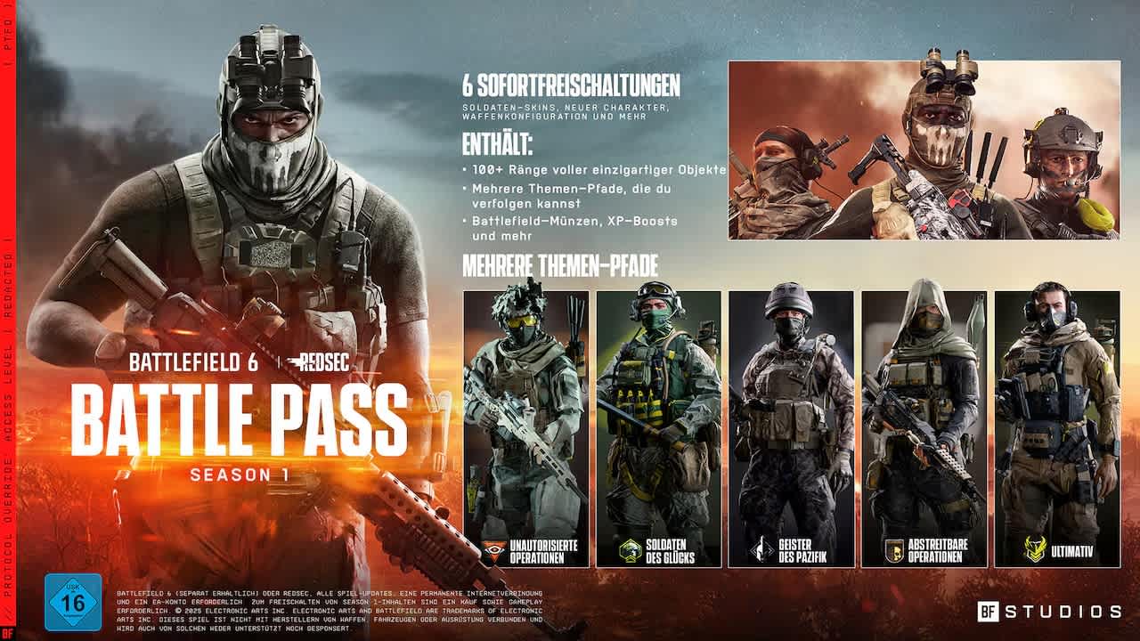Battlefield 6 setzt wie viele Live-Service-Shooter auf ein Battle Pass-System. Der Pass für neue Freischaltungen ist in der Regel in Wochenabschnitte und Belohnungsstufen unterteilt, die Spielerinnen und Spieler durch Gameplay, Herausforderungen und XP-Gewinn freischalten können.