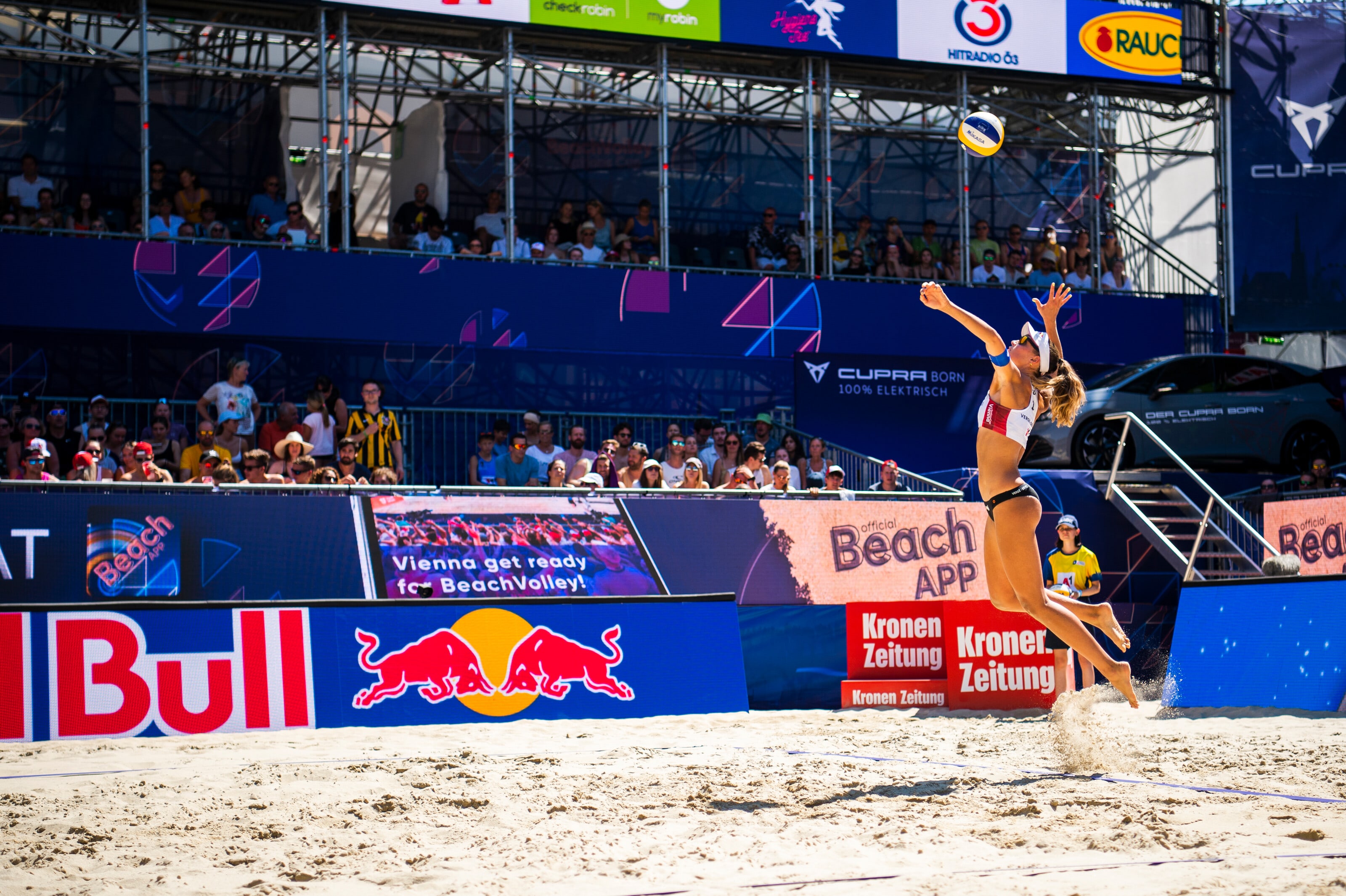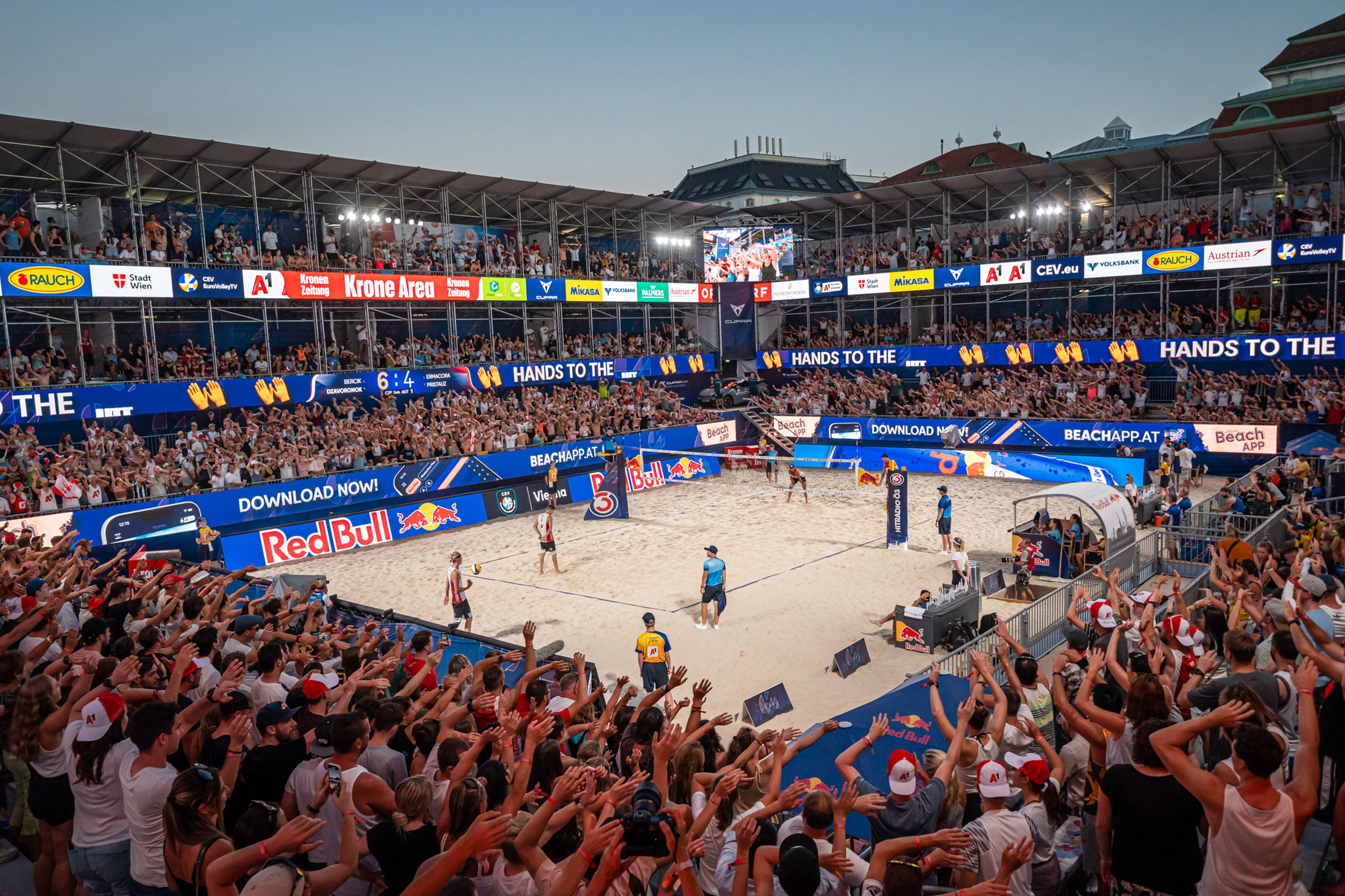 Ausverkauftes Haus, geniale Stimmung und Heimsiege – das alles brachte die Red Bull Beach Arena bereits an Tag zum Kochen. Sie war ab dem frühen Nachmittag mit 2.800 Fans bis auf den letzten Platz gefüllt – insgesamt feierten über den ganzen Tag gesehen rund 4.000 Menschen eine riesige Beachvolleyball-Party. Angeheizt wurde die Stimmung natürlich durch die Siege der österreichischen Teams. Zuerst schafften die Damen am Vormittag doch noch den Aufstieg, dann waren es die beiden Herren-Teams Martin Ermacora und Moritz Pristauz sowie Philipp Waller und Robin Seidl die gegen Tschechien nichts anbrennen ließen und mit 2:0 ins Viertelfinale einzogen. Sowohl die rot-weiß-roten Damen als auch Herren kämpfen am Donnerstag gegen die Niederlande um den Einzug ins Halbfinale.