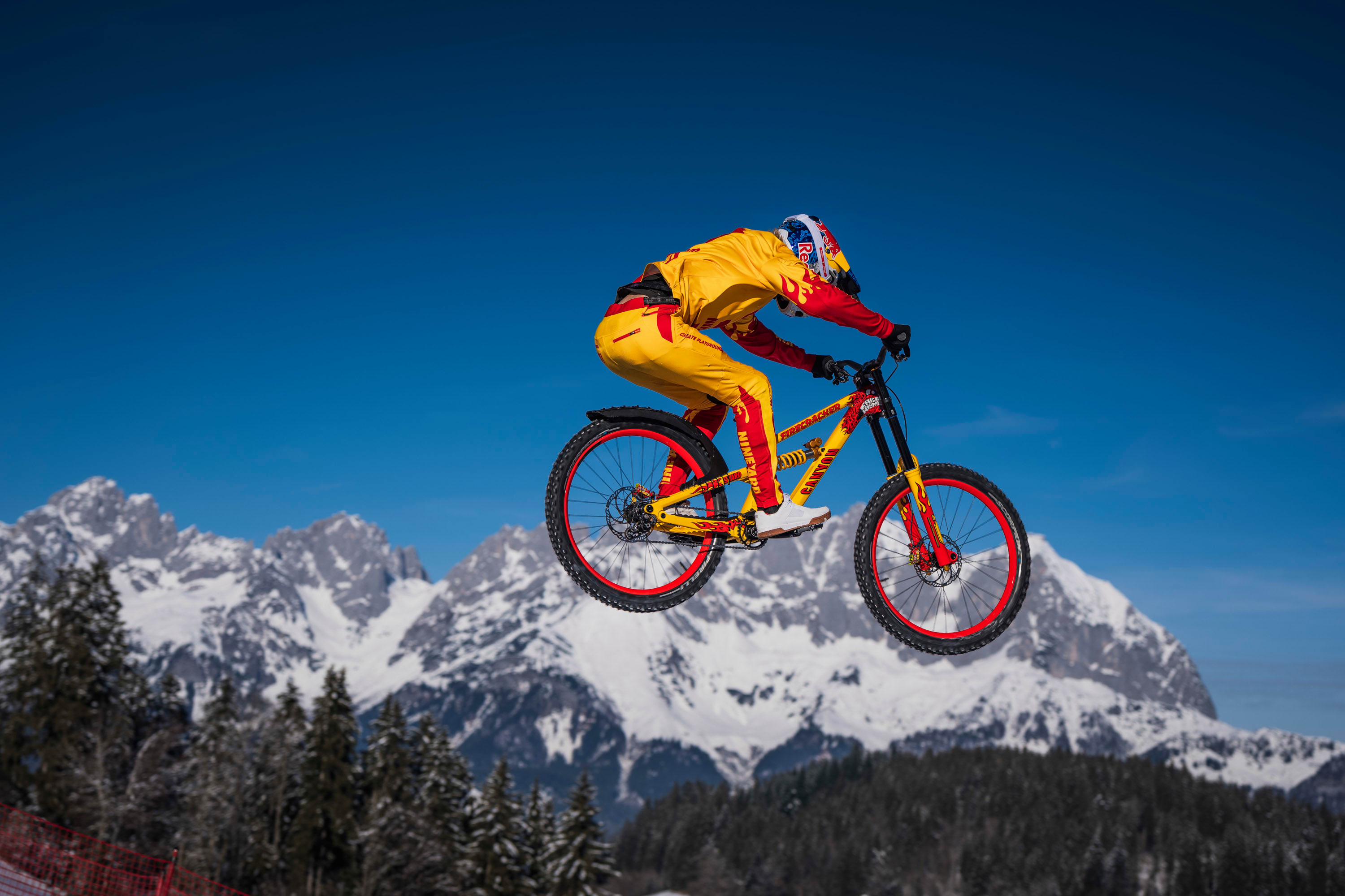 "The Streif" ist ein spektakulärer Edit von Fabio Wibmer mit extrem weiten Sprüngen bis 36 Metern, hohem Luftstand und Maximalgeschwindigkeiten über 100 km/h. So etwas ist nur möglich, wenn auch das Material zu 100 Prozent ready ist, um diesen besonders hohen Belastungen standzuhalten – und das auf Schnee und Eis bei teilweise bis zu -10 Grad. Darum hat Fabio Wibmer gemeinsam mit seinem Team am Material gefeilt, um diese einzigartige Challenge, die legendäre Streif, mit dem Bike zu bezwingen. Denn er hat mit "The Streif" nicht nur sich selbst, sondern auch das Material bis an die Limits gepusht, um das Projekt zu realisieren. "Es ist extrem wichtig, dass das Vertrauen in das Material zu 100 Prozent da ist", betont Fabio Wibmer. "Mit Canyon habe ich einen Top-Partner, der mir viel Sicherheit gibt, weil ich weiß, dass es auf jeden Fall passt."