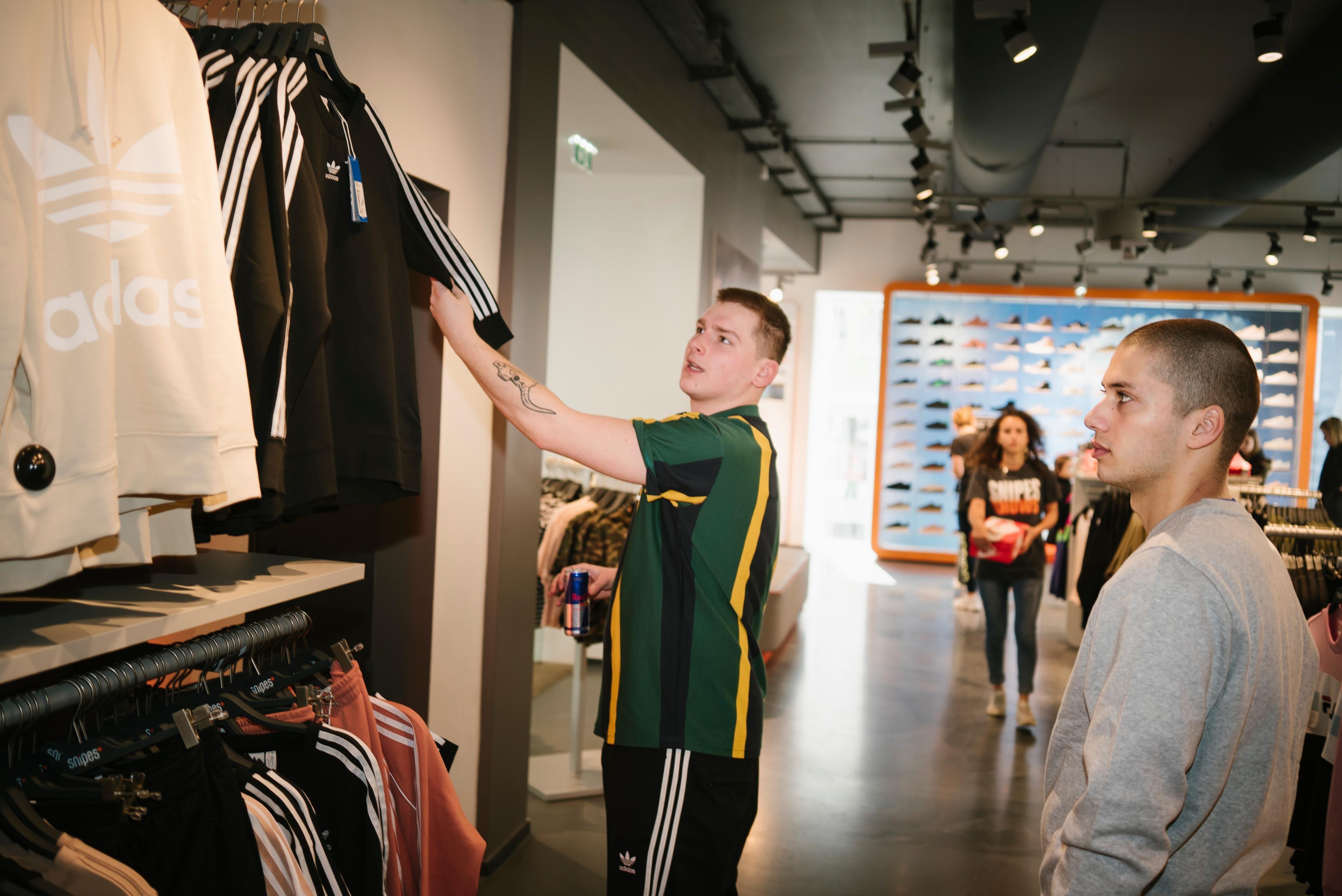 Beim Aussuchen der Teile brauchst du Geduld: Schnapp dir nicht einfach irgendwelche Kleidungsstücke aus den Regalen, sondern überlege, welche Styles du kombinieren könntest. Denn im Endeffekt willst du dort ankommen, wo Jugo Ürdens schon ist: