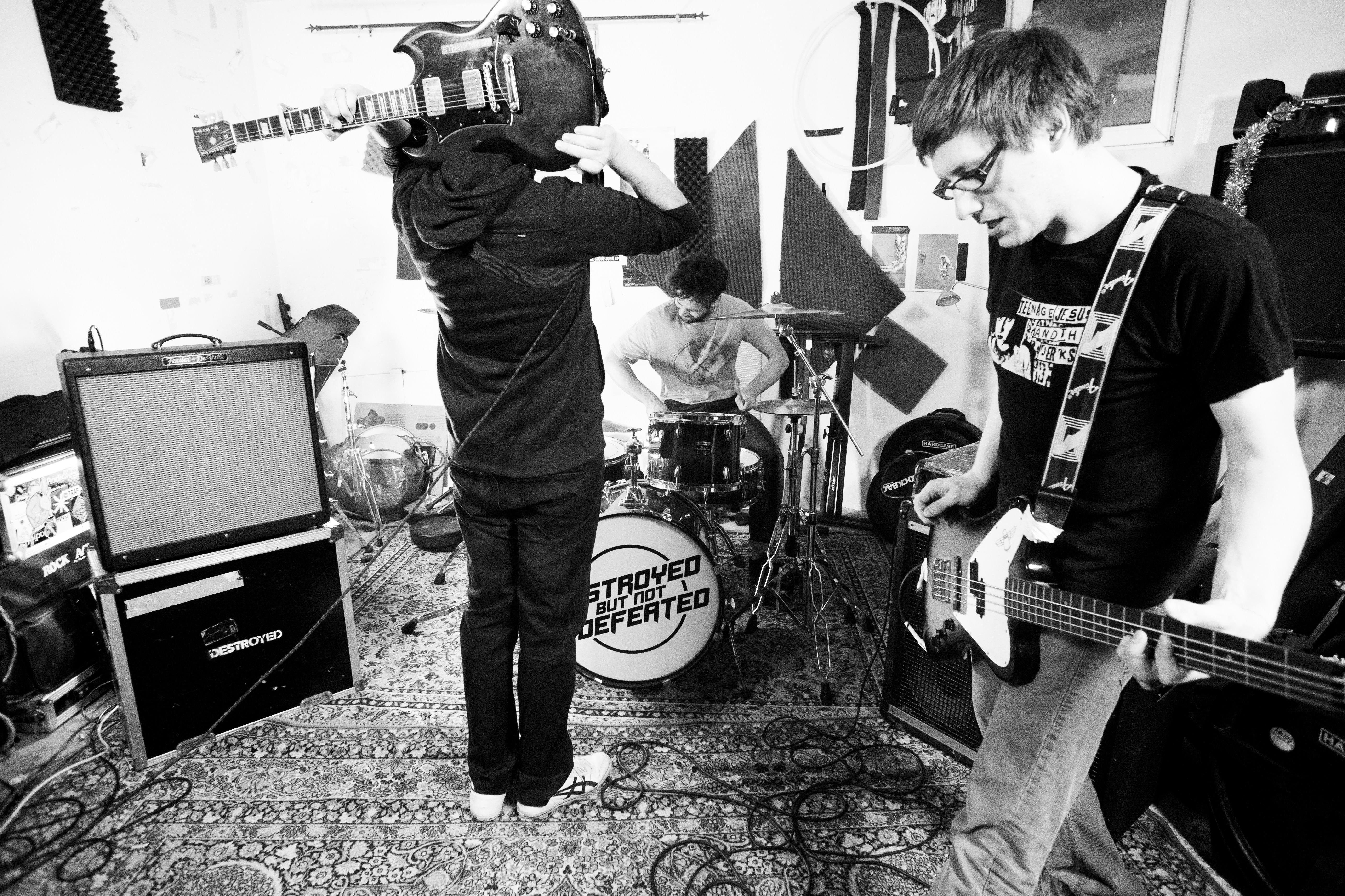Gegenvorschlag: Erfinde dich ruhig von Zeit zu Zeit neu, aber bleibe dir dabei treu! Destroyed but Not Defeated sind ein Paradebeispiel dafür, wie gut es klingen kann, wenn man sich bei einer Albumproduktion auf die Quintessenz des Musikmachens besinnt: In den Proberaum gehen, gemeinsam jammen, so lange, bis die Rädchen ineinandergreifen, selbst wenn’s nur ein simpler Drum-Beat und ein einziger Gitarren-Riff sind. Sobald alles gefällt, macht man Feierabend. Wär halt wichtig, immer die Record“-Taste auf den iPhone zu drücken, weil der Mensch dazu neigt, zu vergessen. Die Streber haben sogar ein eigenes Aufnahme-Dingsbums.