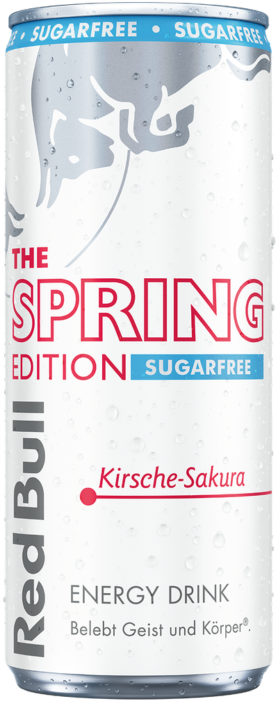 Die Red Bull Spring Edition Sugarfree verleiht Flüüügel mit dem Geschmack von Kirsche mit Noten von Mandel und floraler Kirschblüte.
