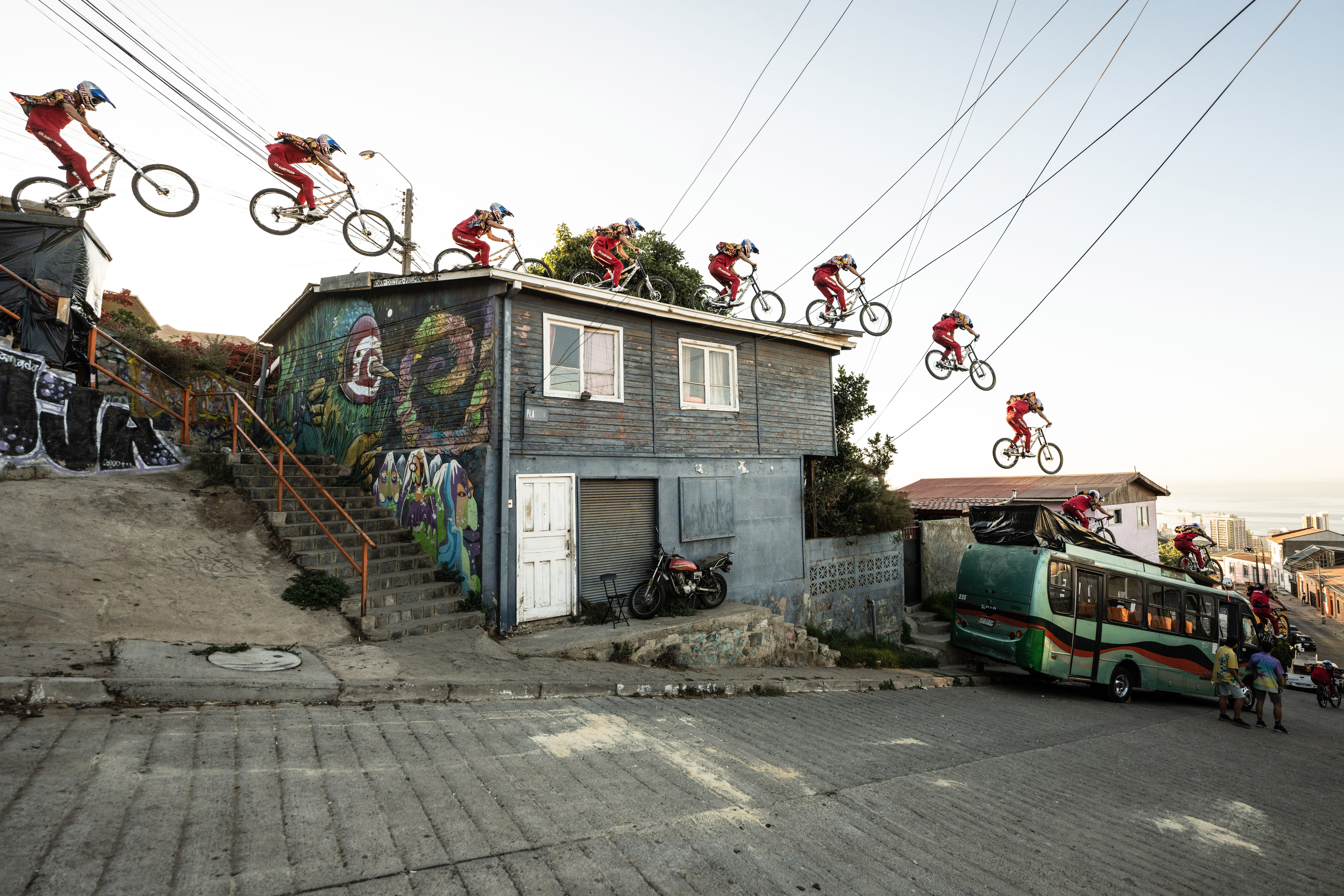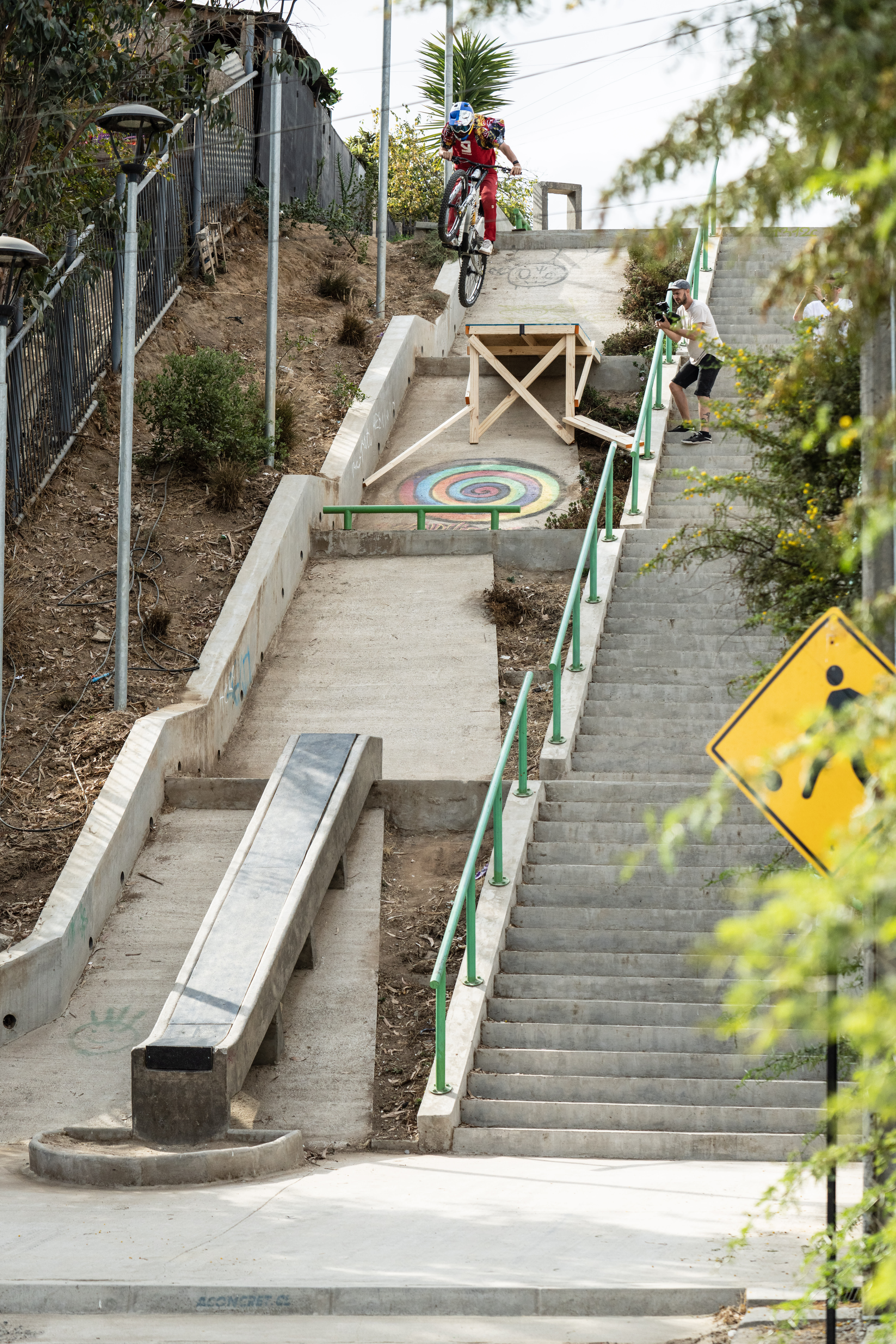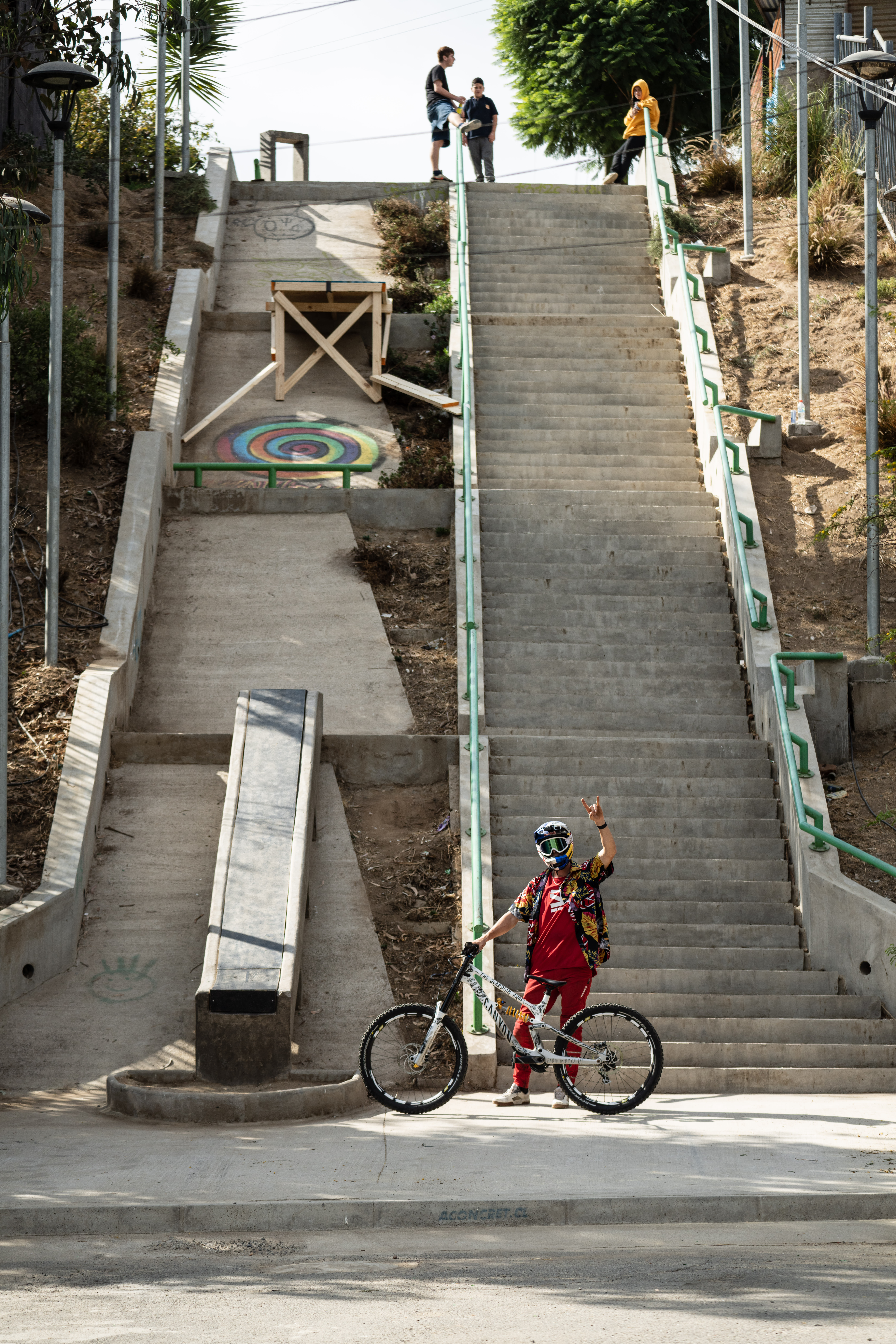 Andere Menschen, das Wetter, die ganzen Circumstances – alles war anders. Für 'Urban Freeride Lives 3' waren wir in Frankreich unterwegs und da waren Treppen everywhere. Hohe Treppen, lange Treppen, schmale Treppen, also alles, was schwierig zu springen ist – das war in Paris und vor allem in Lyon unser Fokus. Für Chile haben wir uns vorgenommen, so wenige Treppen wie möglich zu fahren, sondern die Stadt selbst, die Menschen, den Spirit und die so unterschiedlichen Spots in Valparaíso in den Fokus zu rücken, um den einzigartigen Vibe der Stadt auch in unserem Edit rüberzubringen. Aber das ist mir auch extrem wichtig, dass meine Fans sehen, dass wir beim Urban Freeriding nicht in jeder Stadt Schema A umsetzen, sondern uns auf die Szenerie und das Citylife einlassen. Wir wollen uns nicht wiederholen und uns immer weiterentwickeln – das ist uns mit 'Urban Freeride Lives Chile' glaub ich wieder ganz gut gelungen ...