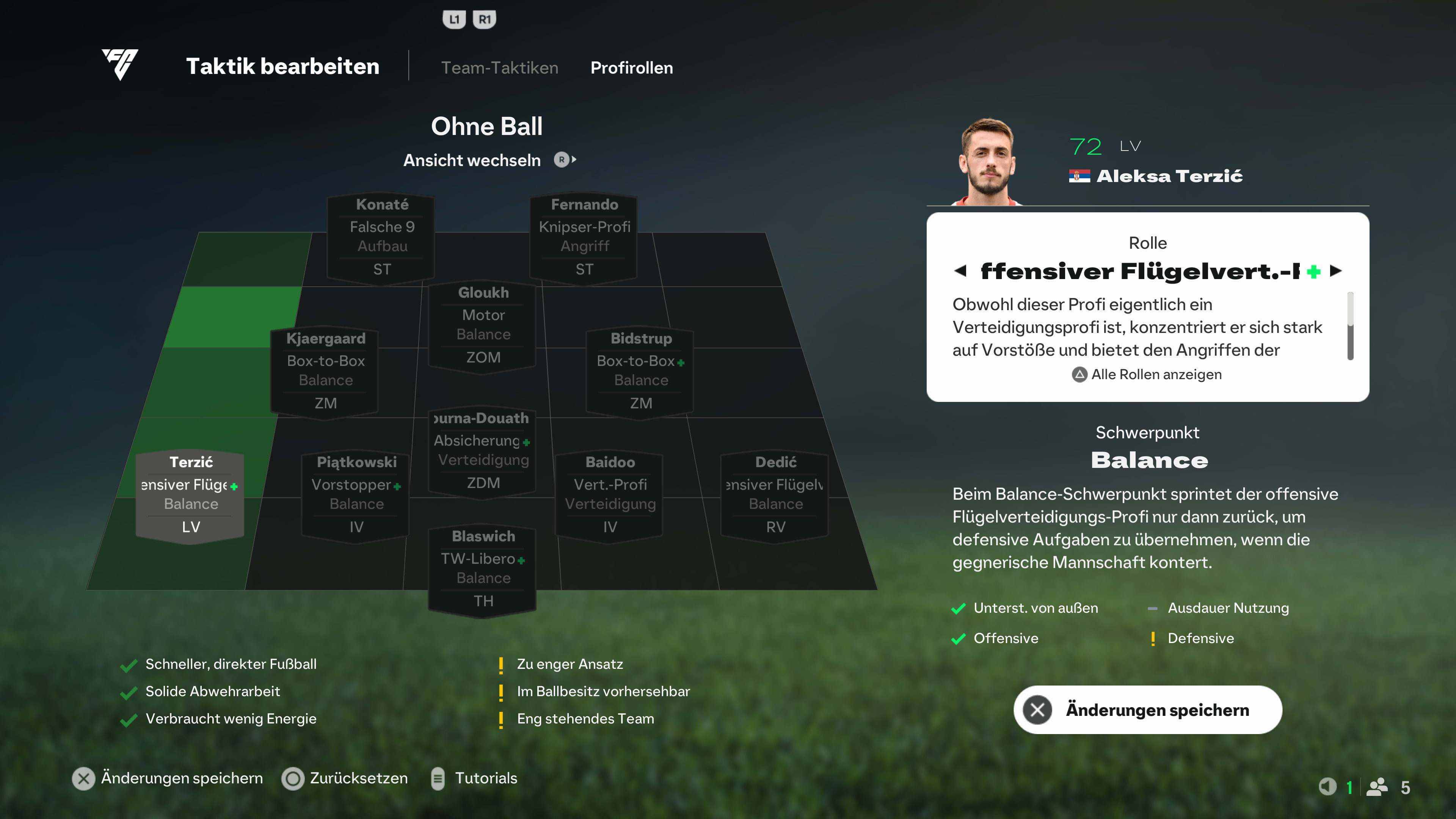 Bild: Flügelverteidiger mit Zug nach vorne: Terzić sorgt für Breite im Spiel. [Bild Spielerrollen AV Links]
