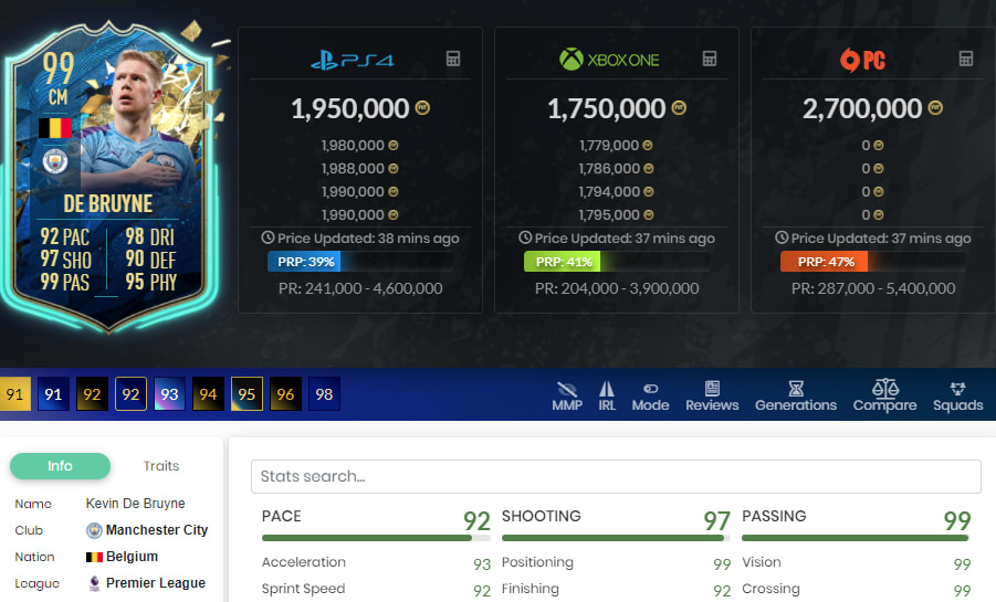 Der Manchester City-Star befindet sich in der besten Zeit seiner Karriere, spielte in der Premier League mit 13 Toren und 20 Assists eine Top-Saison. Dafür wurde Kevin De Bruyne in FUT 20 mit einer Team of the Season- und einer Team of the Year-Karte belohnt. Die TOTS-Karte (99 Gesamtrating) ist sogar besser als die TOTY-Version (98 Overall). Einige seiner unglaublichen Einzelwerte: 99 Passen, 98 Dribbling und 97 Schießen.