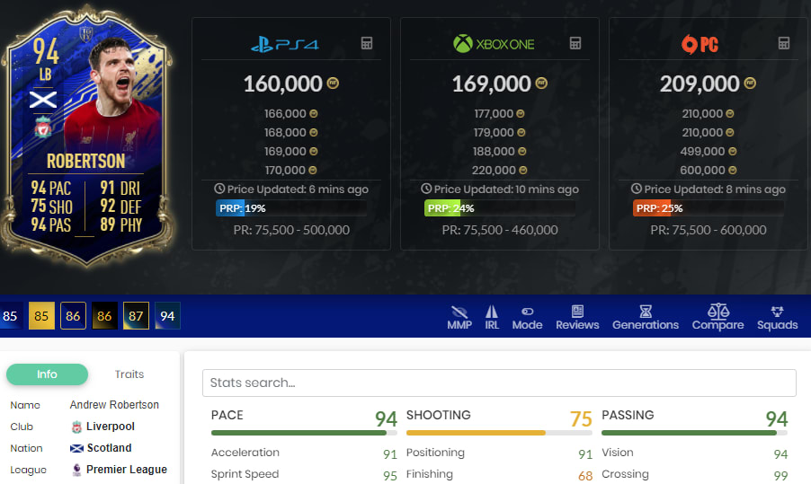 Ihr merkt: Das FUT 20 Top-Team ist mit vielen Liverpool-Spielern gespickt. Bester Linksverteidiger ist Andrew Robertson, dessen TOTY- und TOTS-Version jeweils ein Gesamtrating von 94 hat. 94 Tempo, 94 Passen und 92 Verteidigen machen ihn zu einem optimalen Außenverteidiger.