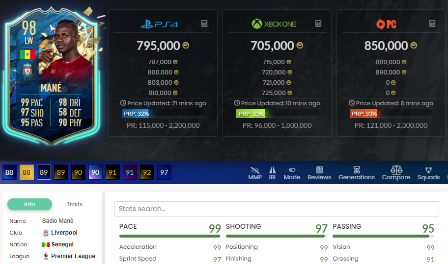 Auf der linken Außenbahn ist Liverpools Flügelflitzer Sadio Mané das Maß aller Dinge. Seine TOTS-Karte kommt mit einem Gesamtrating von 98 daher (TOTY „nur“ 97). 99 Tempo, 98 Dribbling und 97 Schießen bringen jeden Gegner zur Verzweiflung.
