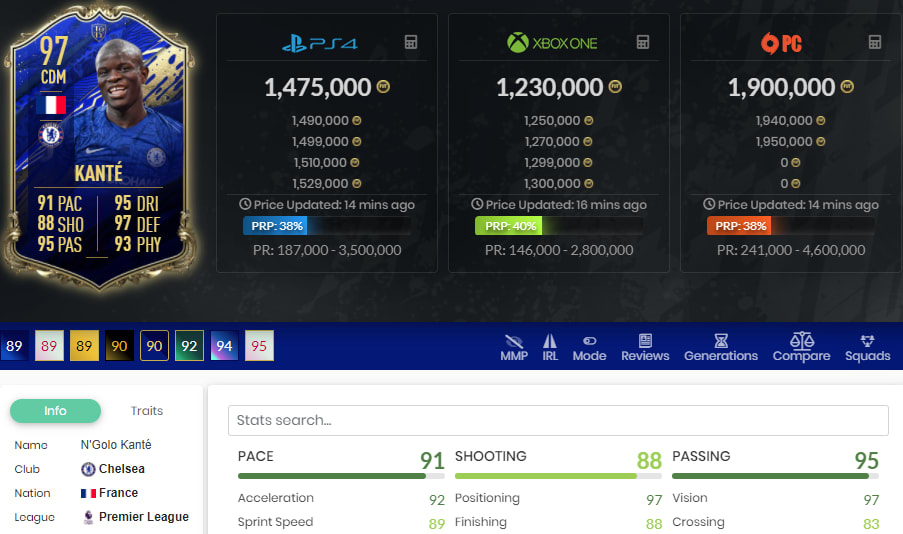 Im defensiven Mittelfeld ist zum wiederholten Male die Team of the Year-Version von N’Golo Kanté das Nonplusultra. 97 Verteidigen, 95 Passen und 95 Dribbling sind nur einige der vielen Top-Werte des Chelsea-Spielers. Gesamtrating: 97.