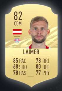Ein weiterer OP-Spieler aus dem Kader von RB Leipzig ist Konrad Laimer. Der Österreicher ist mit 85 Tempo, 80 Defensive und 77 Physis ein super Abräumer vor der Abwehr. Mit einem Preis von nur knapp über 1.200 Münzen bekommt ihr diese starke Karte beinahe geschenkt.