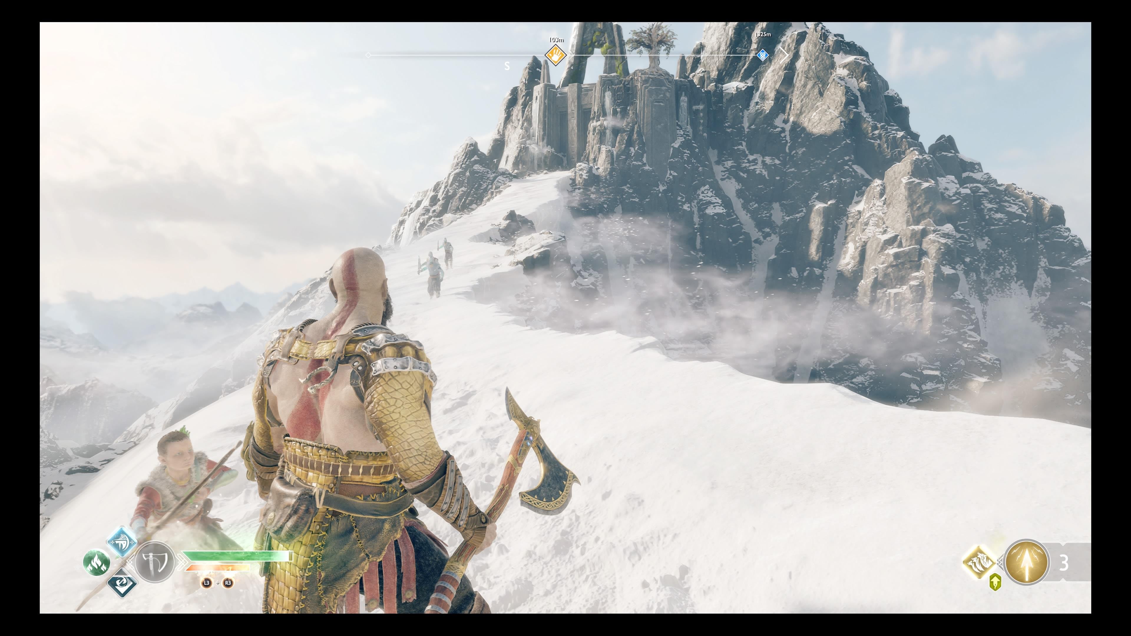 Während in anderen Spielen ein Begleiter schonmal nerven kann, ist Kratos’ Sohn guter Sparingpartner für witzige Dialoge. Aber auch spielerisch hilft er, wo er kann. So kann er mit den verschiedenen Pfeilen nicht nur im Kampf äußerst hilfreich sein, er öffnet euch mit z.B. Schockpfeilen neue Wege. Setzt ihn viel ein, auch seine Spezialfähigkeiten – er wird nicht nur einmal euer Leben retten! Und vergesst nicht: mit L2 könnt ihr die Pfeile direkt auf ein Ziel lenken.
