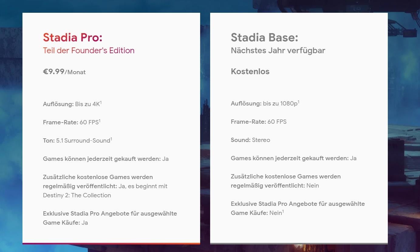 Immerhin gibt es von Google Stadia im kommenden Jahr auch eine Basis-Variante. Komplett ohne Kosten, dafür mit einer geringeren Qualität und ohne monatliche Gratisspiele.