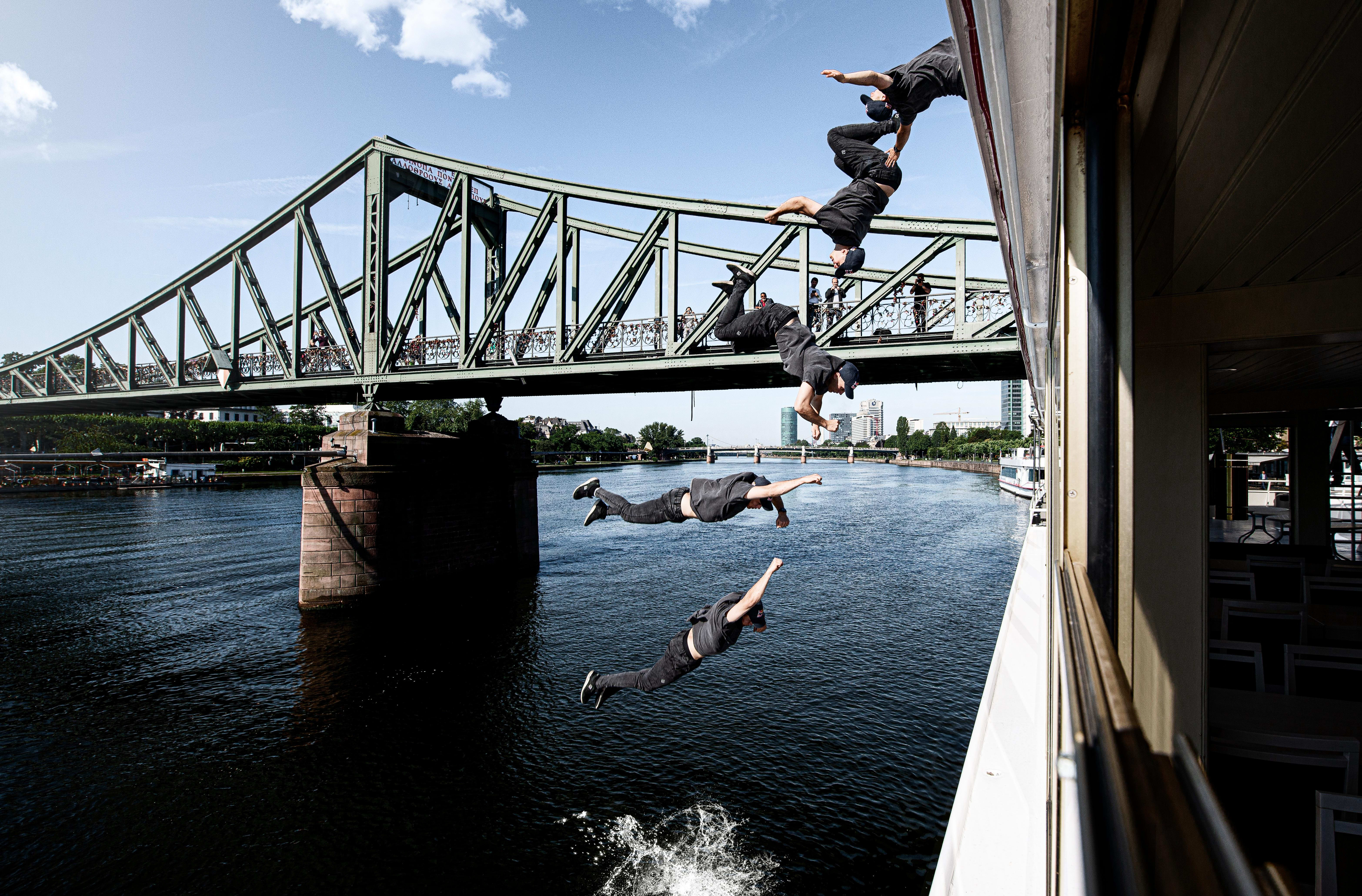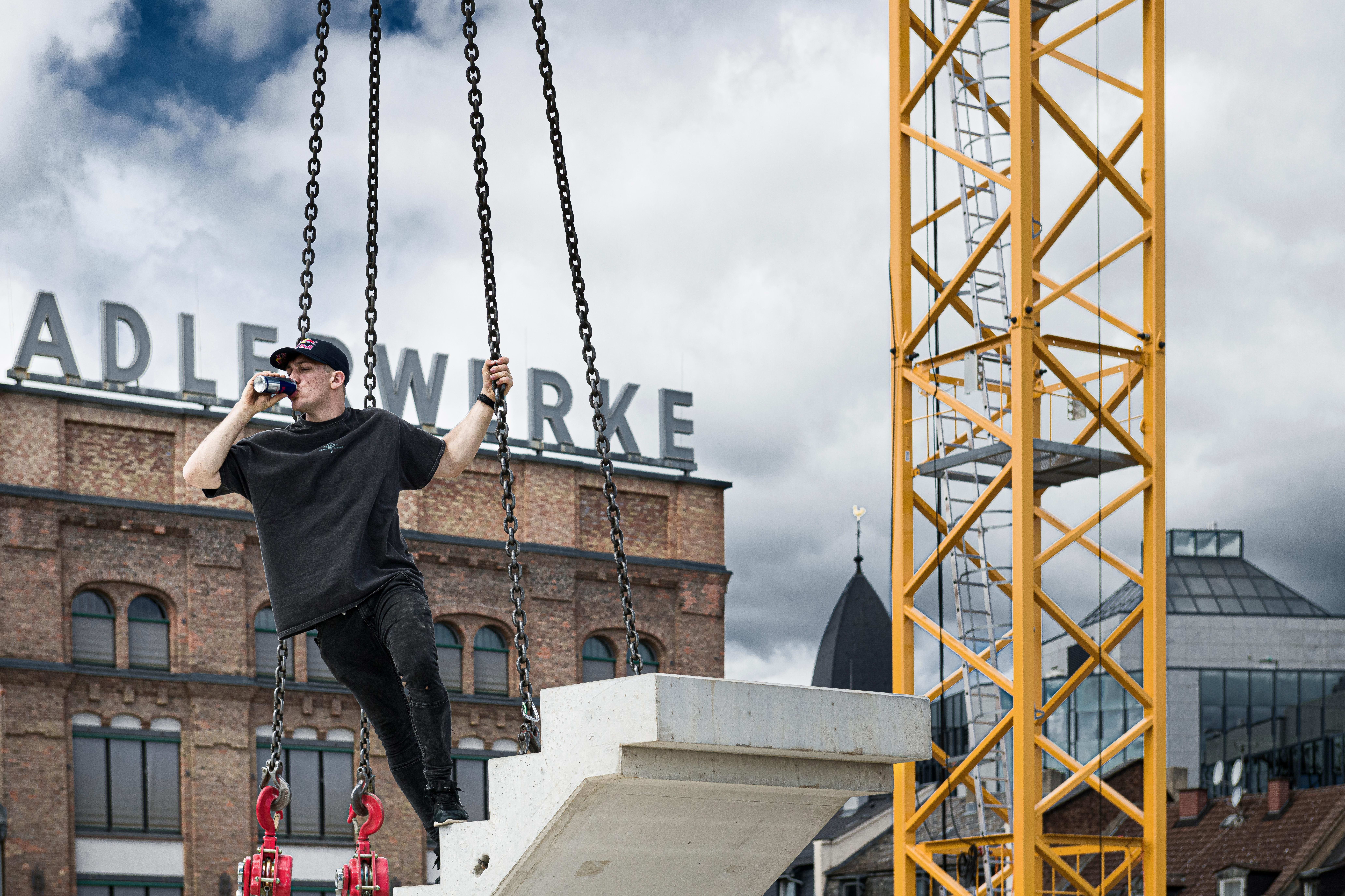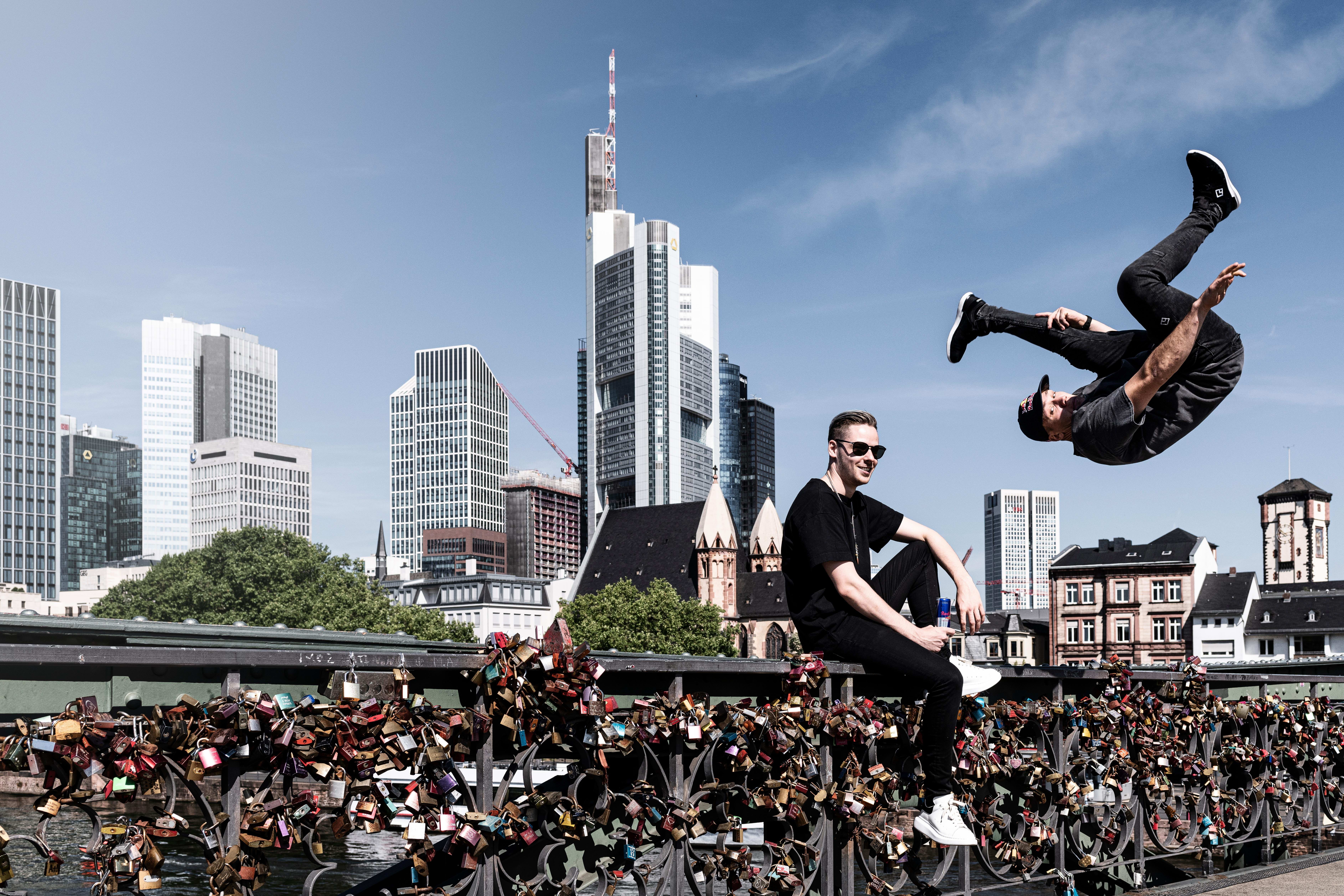 So geschmeidig und anstrengungslos Jason Paul im Video rückwärts durch Frankfurt läuft, auf Boote springt und meterhohe Baugerüste erklimmt, so aufwendig waren die Dreharbeiten. Doch genau für solche Momente lebt Jason Paul. Für das perfekte Ergebnis investierten er und die Film-Crew Mischfabrik, bis zu 18 Stunden am Tag.