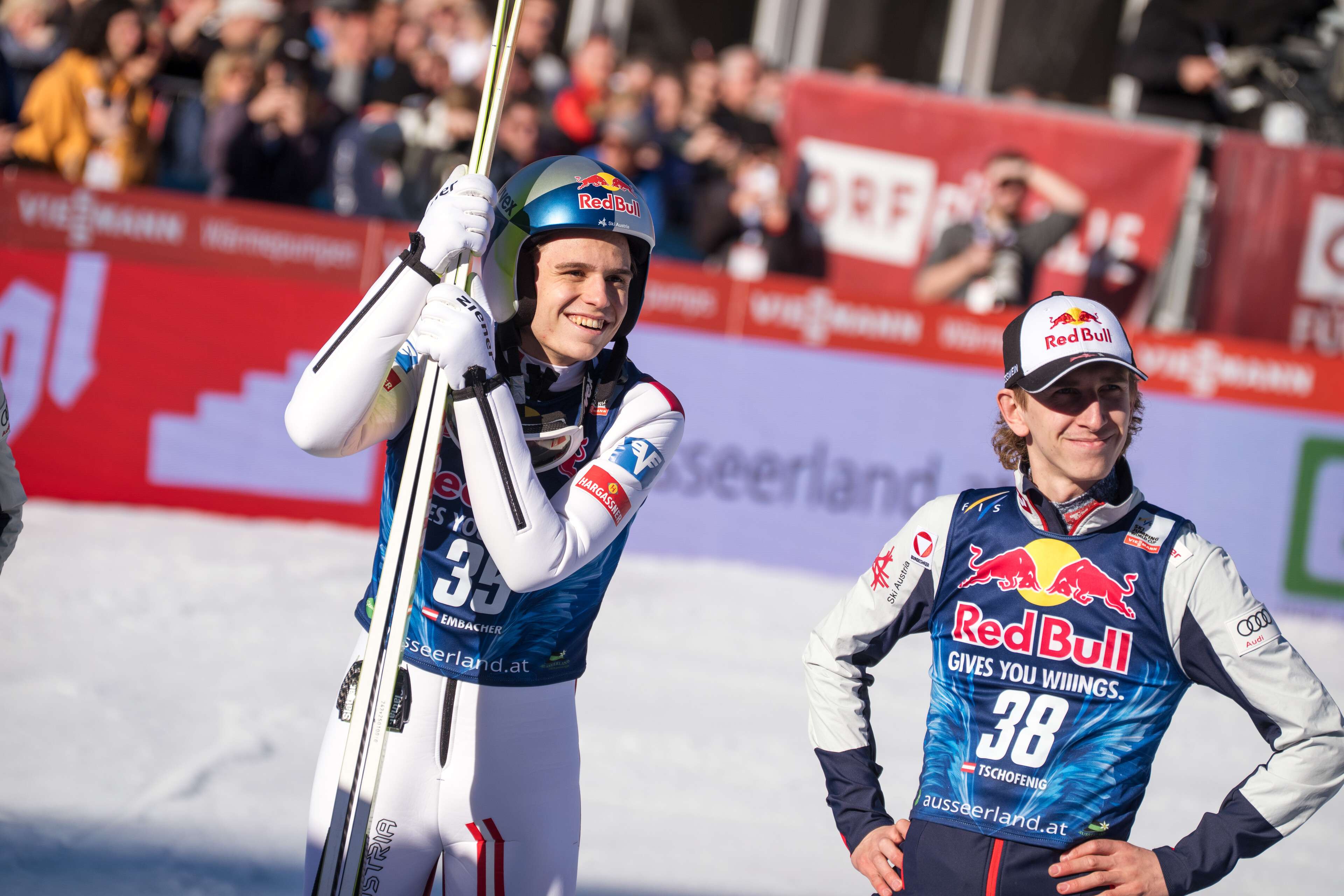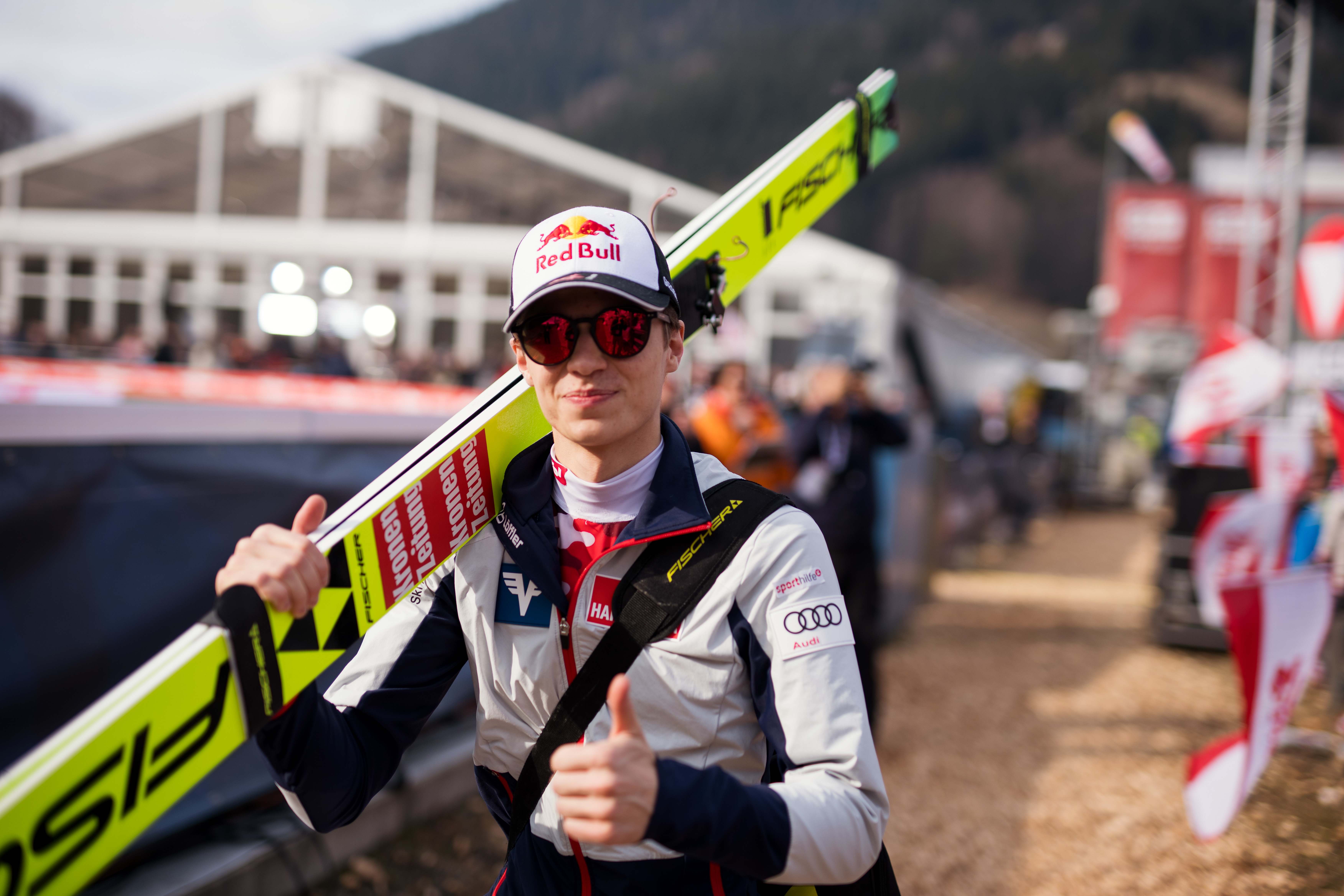 Beim ersten von zwei Kulm-Fliegen erlebten die über 13.000 Fans eine hauchdünne Entscheidung um den Sieg mit Stephan Embacher in einer der Hauptrollen. Nach zwei Durchgängen ging es um eine Differenz von lediglich 1,1 Punkten, es war ein extrem knappes Duell um um Platz 1. Nur der zwölffache Saisonsieger Domen Prevc konnte das nächste Kapitel der Erfolgsstory des 20-Jährigen Tirolers nach Olympia-Gold im Superteam-Springen (noch) verhindern. Umso bemerkenswerter macht die Leistung der Umstand, dass Stephan Embacher den ersten Durchgang mit einem gebrochenen Skischuh absolvieren musste. "Es war vor dem ersten Sprung schon etwas hektisch wegen dem Skischuh. Aber ich bin sehr zufrieden mit meiner Leistung heute. Es waren zwei sehr gute Sprünge", betonte Stephan Embacher. "Domen und ich schenken uns nichts, es ist ein cooles Duell. Morgen sind die Karten wieder neu gemischt!"