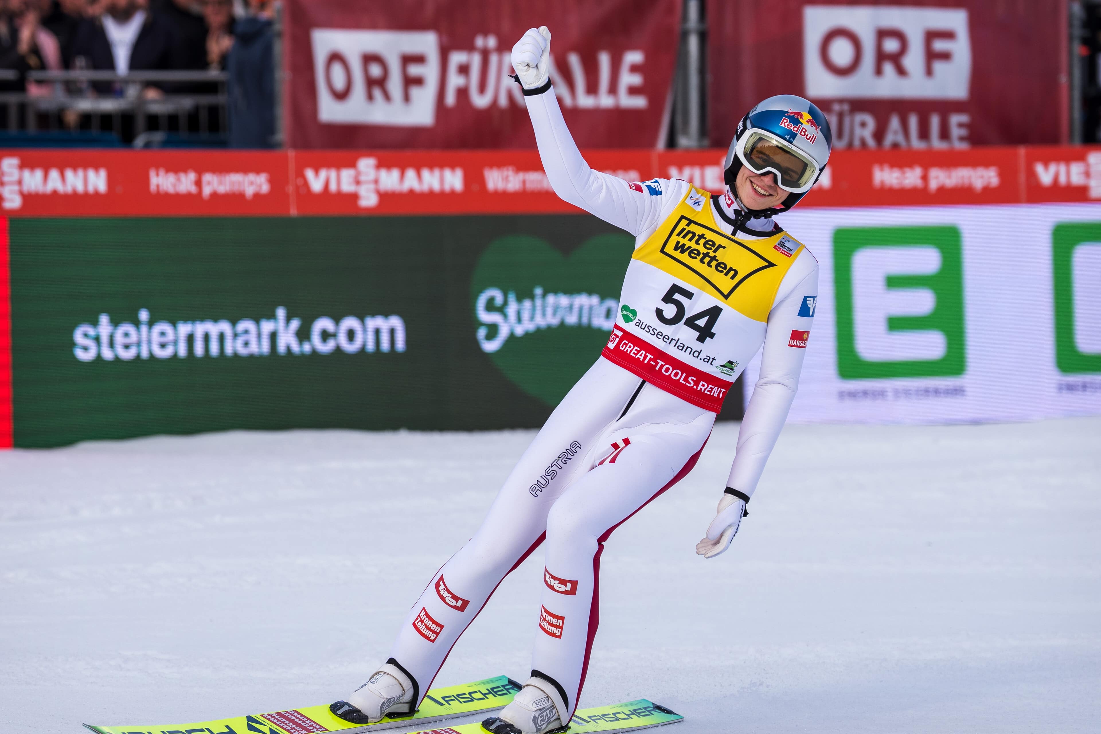Ein starke Aufholjagd glückte Daniel Tschofenig im zweiten Durchgang hin – er verbesserte sich mit einem starken Flug auf 212,5 Metern um neun Plätze auf Rang vier. Der Kärntner findet sich immer besser mit der Skiflugschanze am Kulm zurecht und wer weiß, was Daniel Tschofenig für den zweiten Kulm-Bewerb noch im Talon hat.