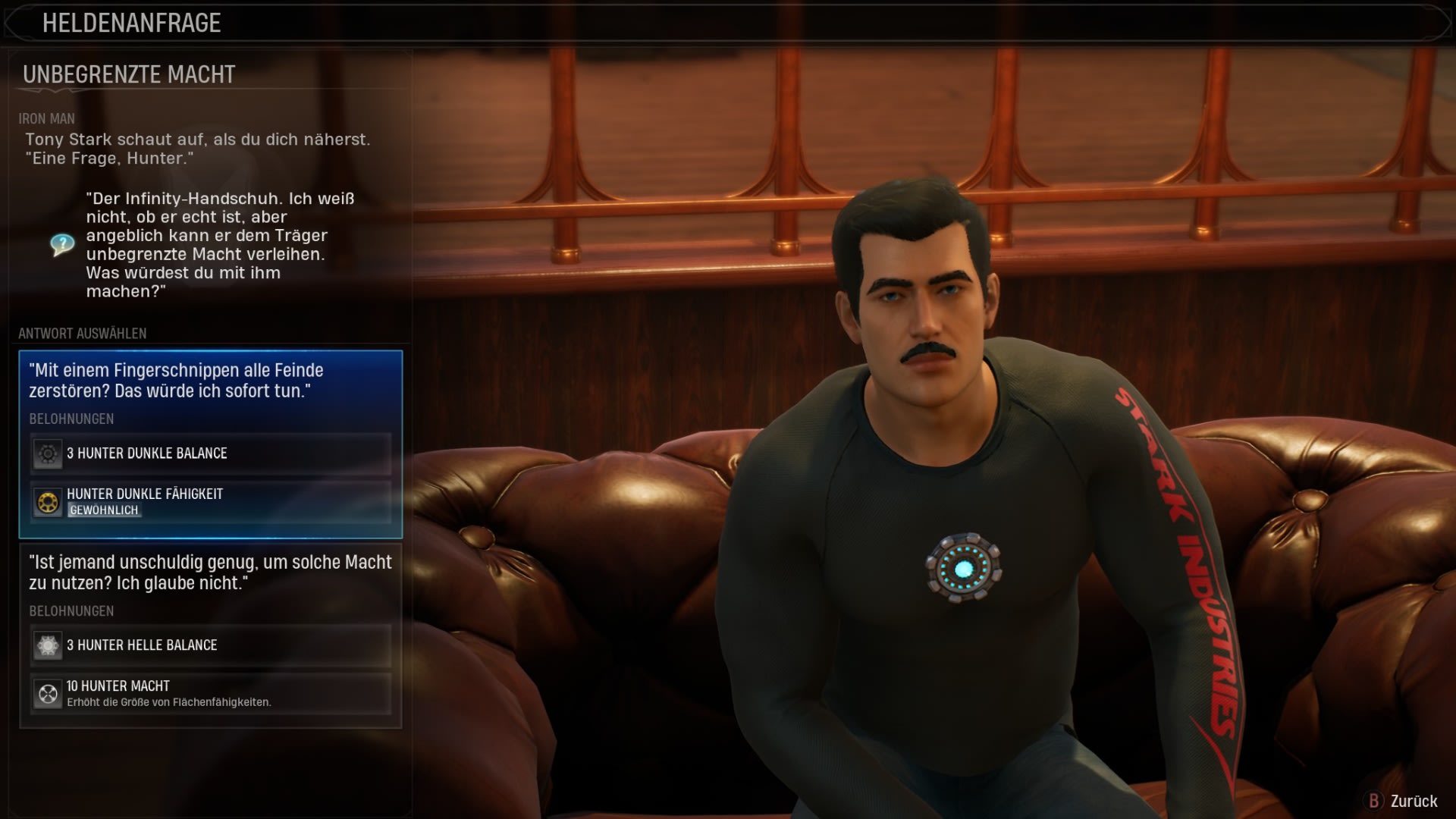 Genau so stehen aber auch die Beziehungen zu euren Helden-Kumpanen im Zentrum, die ihr durch eure Taten und Dialoge verbessern oder verschlechtern könnt. Freundschaften zu Blade, Iron Man und Co gipfeln dabei in mitunter starken Fähigkeiten-Boosts und schalten ganz neue Skills frei.