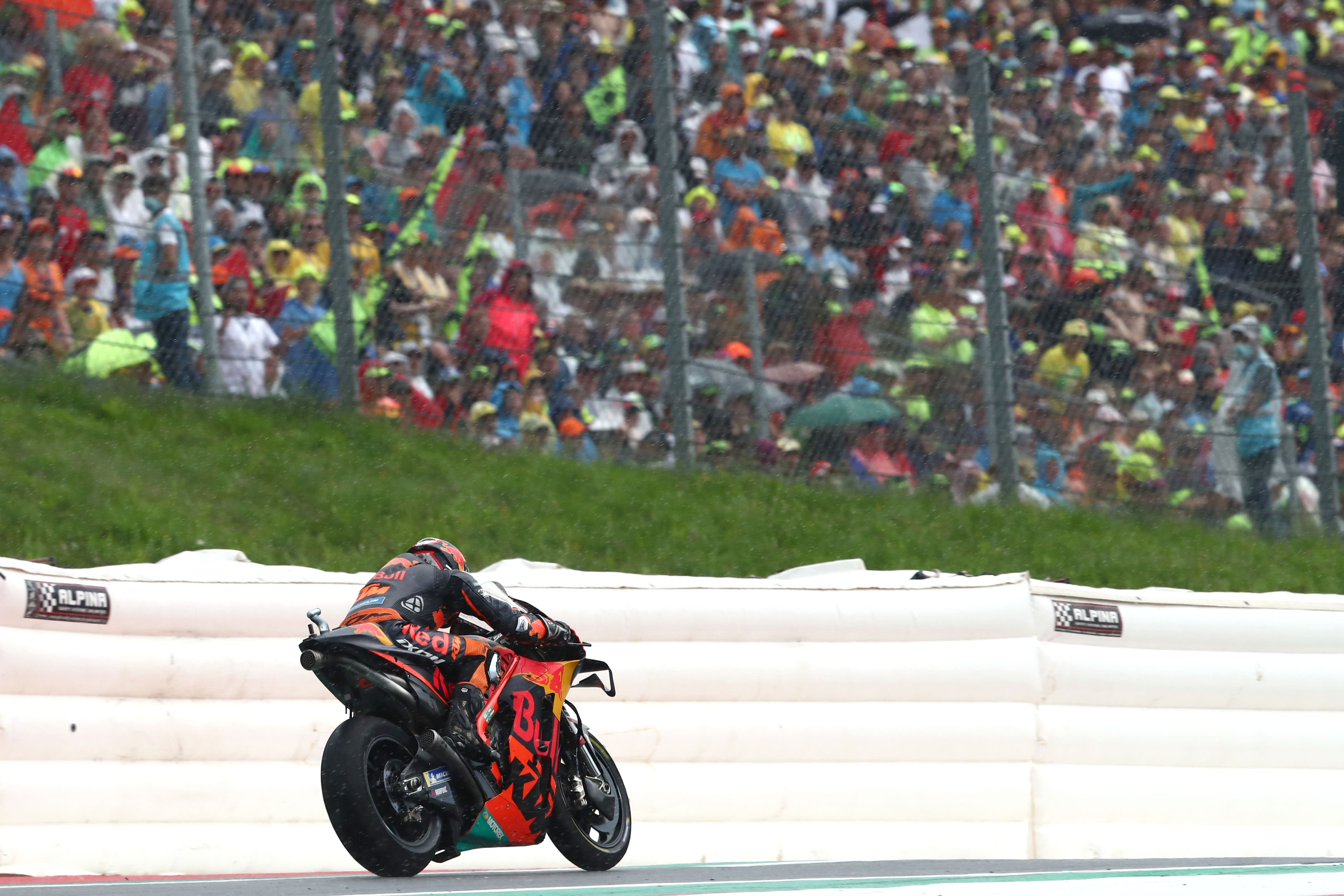 Bevor Binder den unerwarteten Heimsieg für Red Bull KTM Factory Racing einfuhr, war schon Minuten vor dem Start der MotoGP™ in Österreich Unruhe angesagt. Immer mehr dunkle Wolken zogen auf und der leichte Regen setzte ein - doch nicht genug für die Event-Organisatoren, um ein Regenrennen auszurufen.