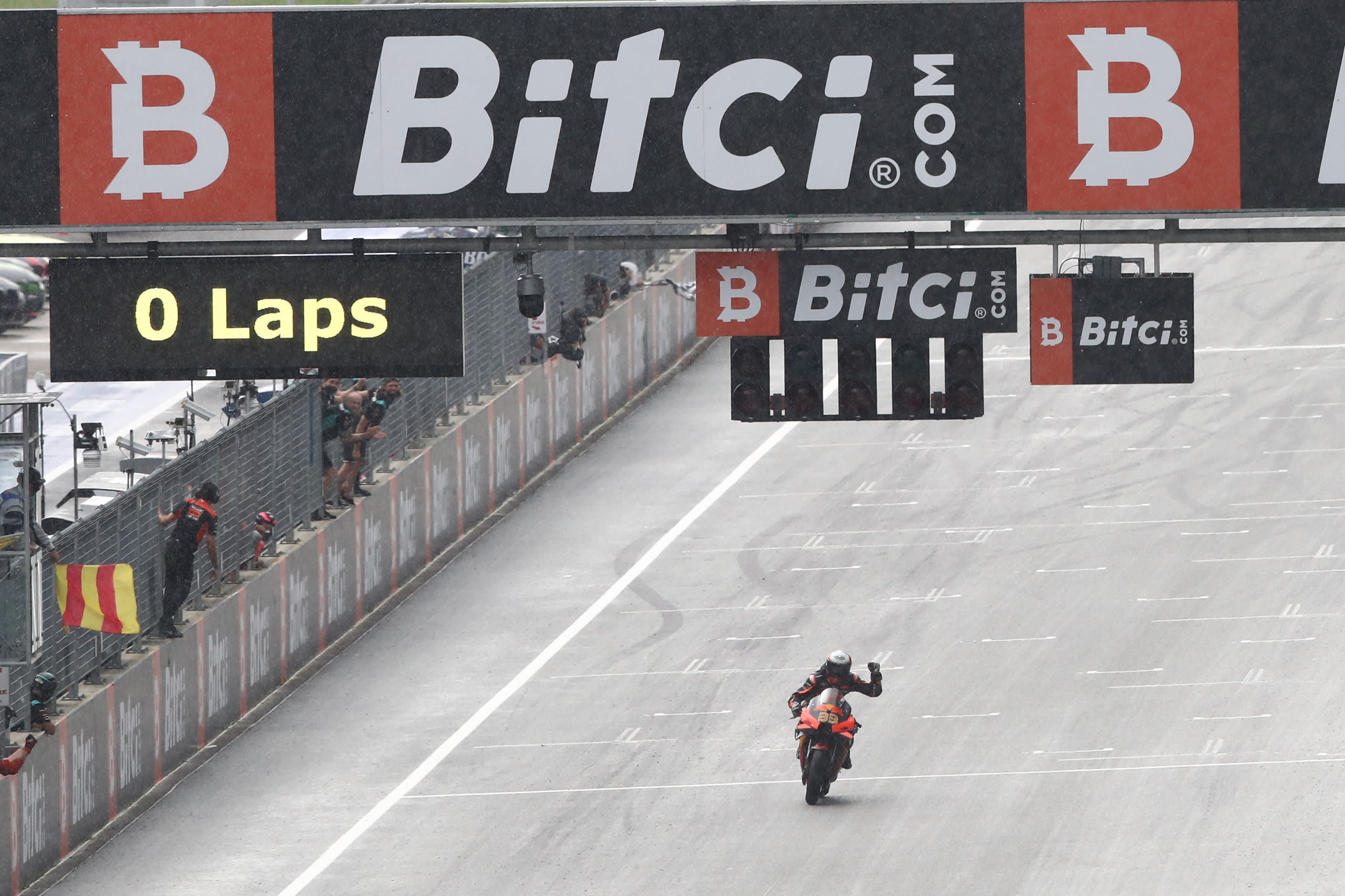 Zwar war Binder 10 Sekunden langsamer unterwegs als auf trockener Strecke, dennoch blieb er beharrlich bei seinem Vorhaben. Der Südafrikaner biss sich durch und überquerte die Ziellinie auf den Slicks, um sich seinen zweiten Sieg in der Premium-Klasse zu sichern. Dahinter fuhren Bagnaia und Martín noch aufs Podium. Márquez crashte währenddessen in Kurve eins und musste das Rennen beenden.
