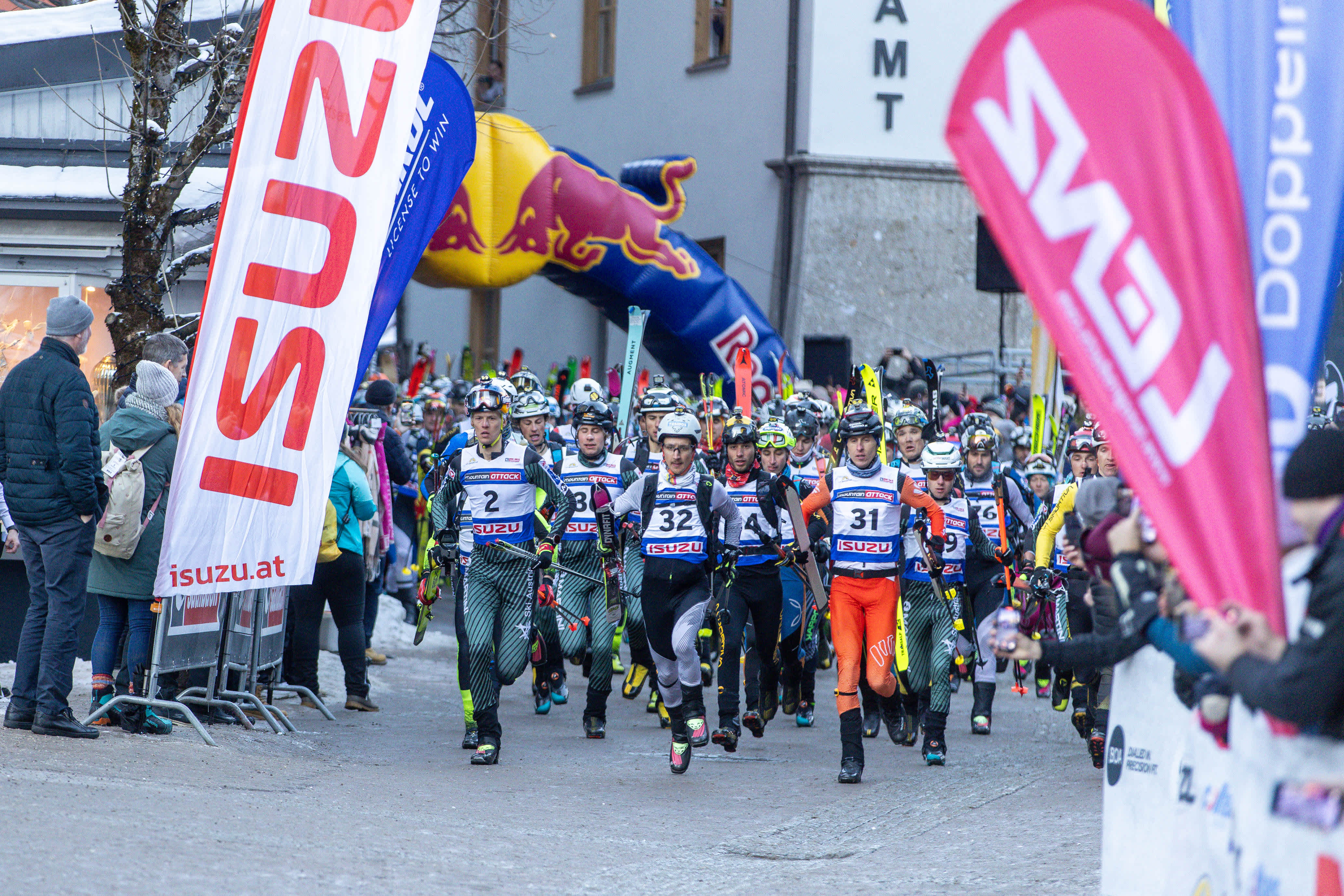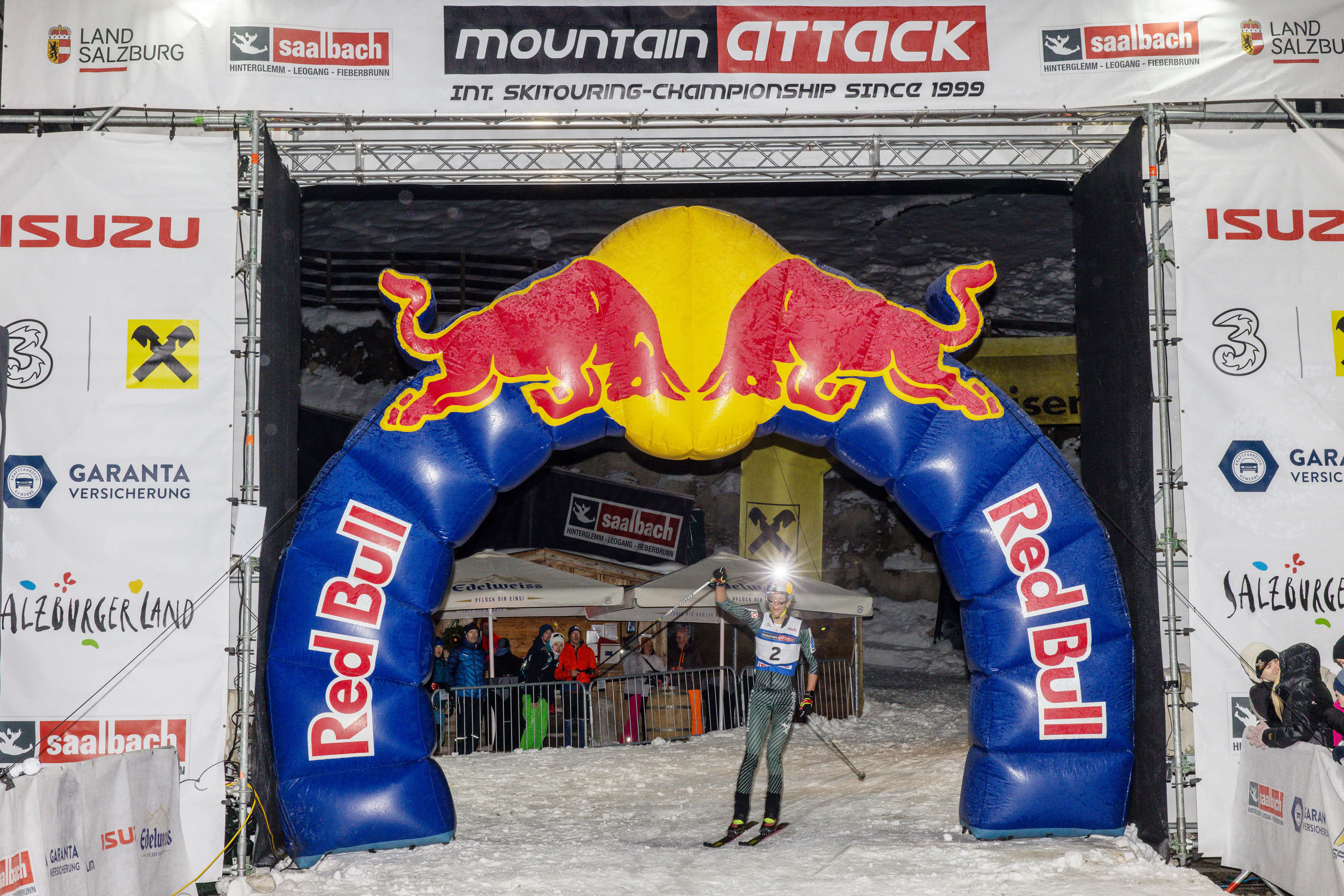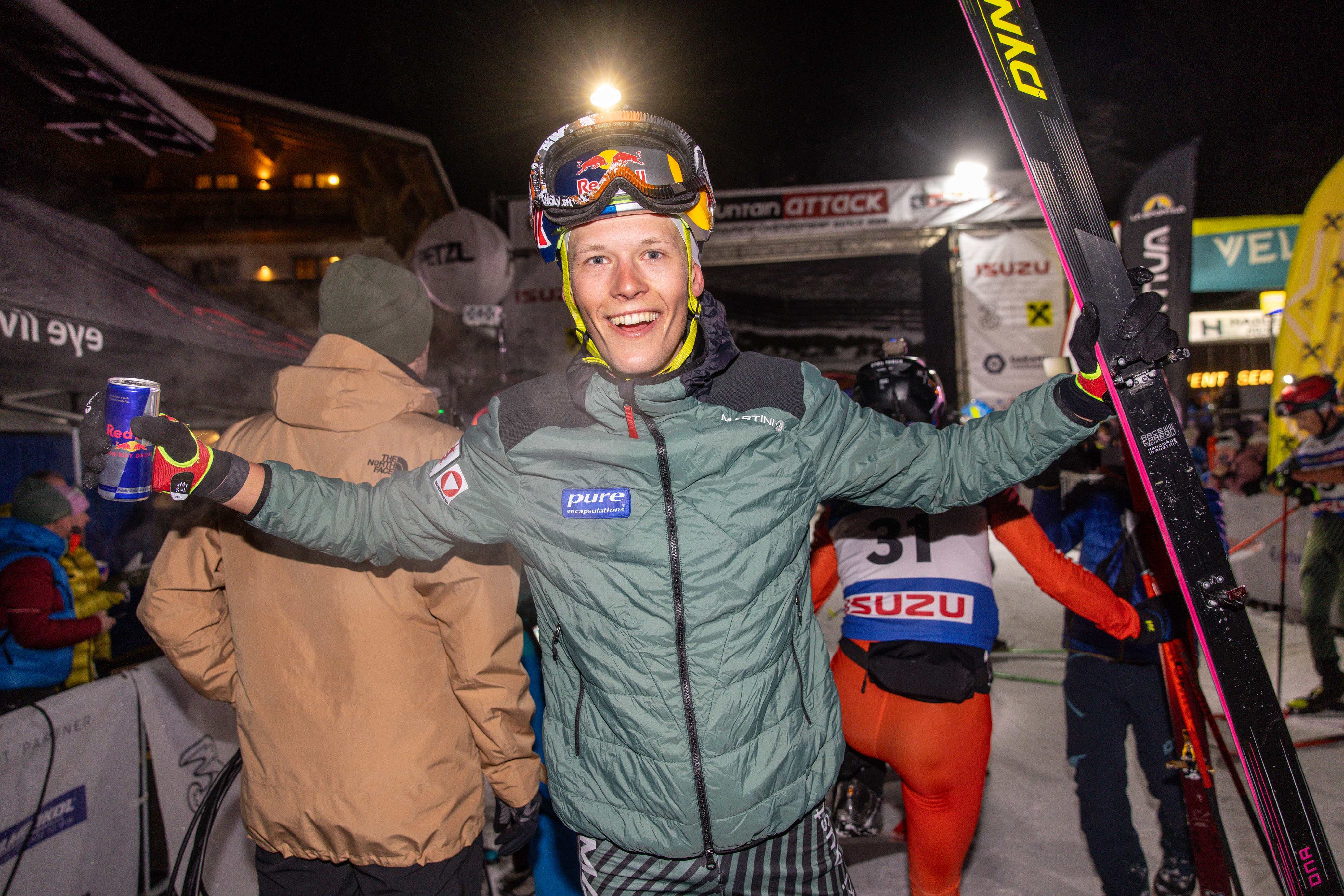 Um Punkt 16.00 Uhr fiel am Saalbacher Dorfplatz der Startschuss zur 27. Mountain Attack – und vom ersten Moment an war eines klar: Paul Verbnjak geht mit viel Selbstvertrauen in das Tourenski-Kultrennen. Mit "Hells Bells" im Ohr und den Premierensieg bei der Mountain Attack vor Augen, sprintete der 23-jährige Kärntner vom Start Richtung Piste los und zeigte gleich von Beginn an seinen Gegnern um den Marathon-Sieg, dass es an diesem Tag eine Herausforderung sein wird, an ihm über insgesamt sechs Gipfel und 3.010 Höhenmeter dranzubleiben.