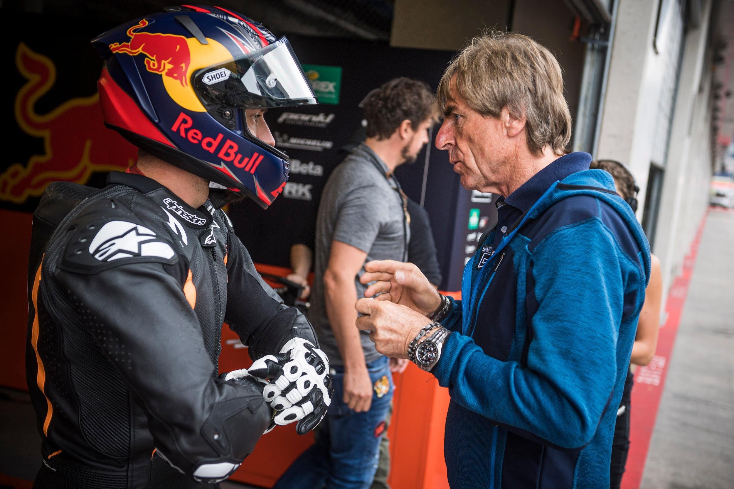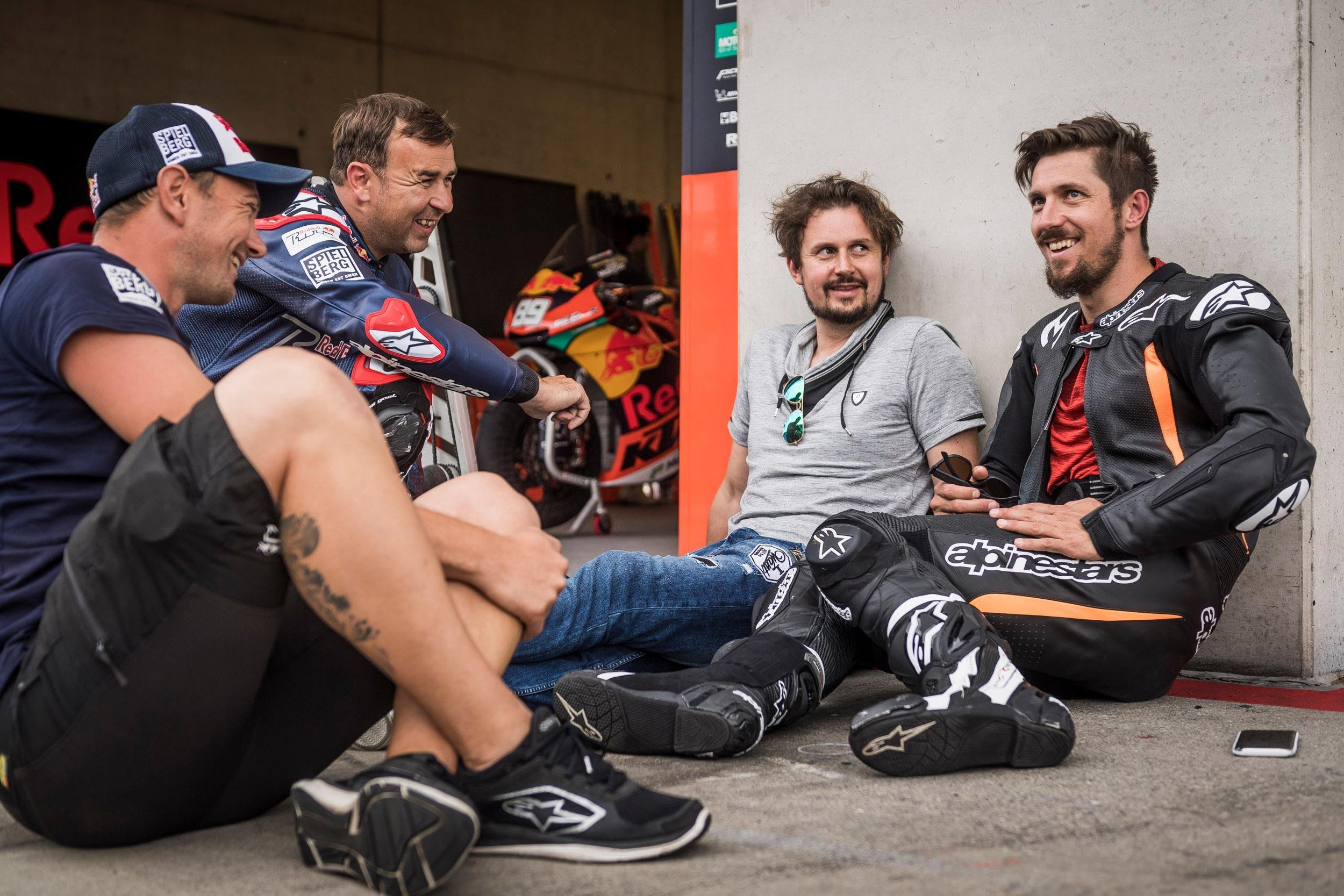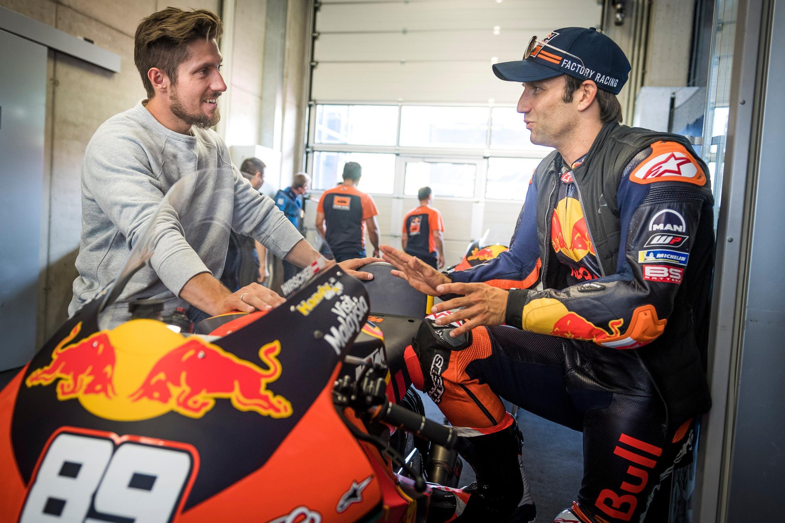 Auf der Strecke hatte Marcel Hirscher Unterstützung von KTM MotoGP-Fahrer Johann Zarco: „Johann hat den Asphalt mit dem Zeigefinger gestreichelt und mir gezeigt: ,Runter mit dir!’ Ich hab’ mir nur gedacht, der ist zweifacher Weltmeister, ich werd’ schon nicht umfallen! Für ihn ist es ungefähr so, wie für mich, wenn ich einem Deutschen Skifahren lernen müsste!" (mit Augenzwinkern, Anm.)