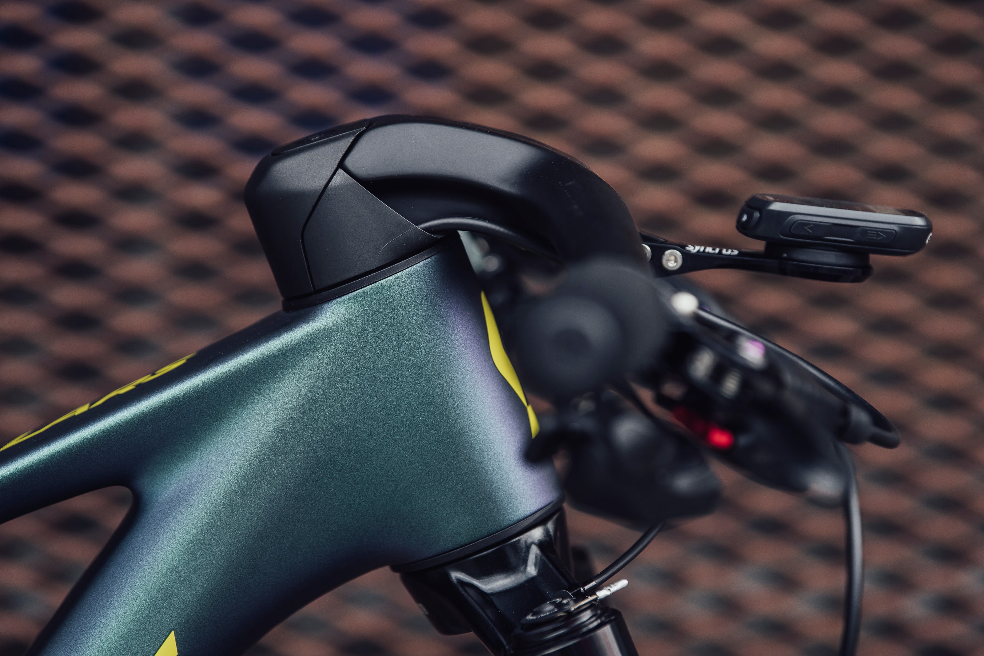 Auch die Verkabelung der Bremsen und der Gangschaltung sind im Rahmen untergebracht, womit das Bike mit einer fabelhaften Ästhetik daherkommt. Daneben entstehen mit dieser Herangehensweise einige Vorteile: Kein Dirt oder Schlamm beeinträchtigt den Dämpfer und die Kabel, während der zusätzliche Platz dafür sorgt, dass die Athleten zwei Wasserflaschen unterbringen können. Der Rahmen ist außerdem super-leicht: Er wiegt nur 1,870 Kilogramm.