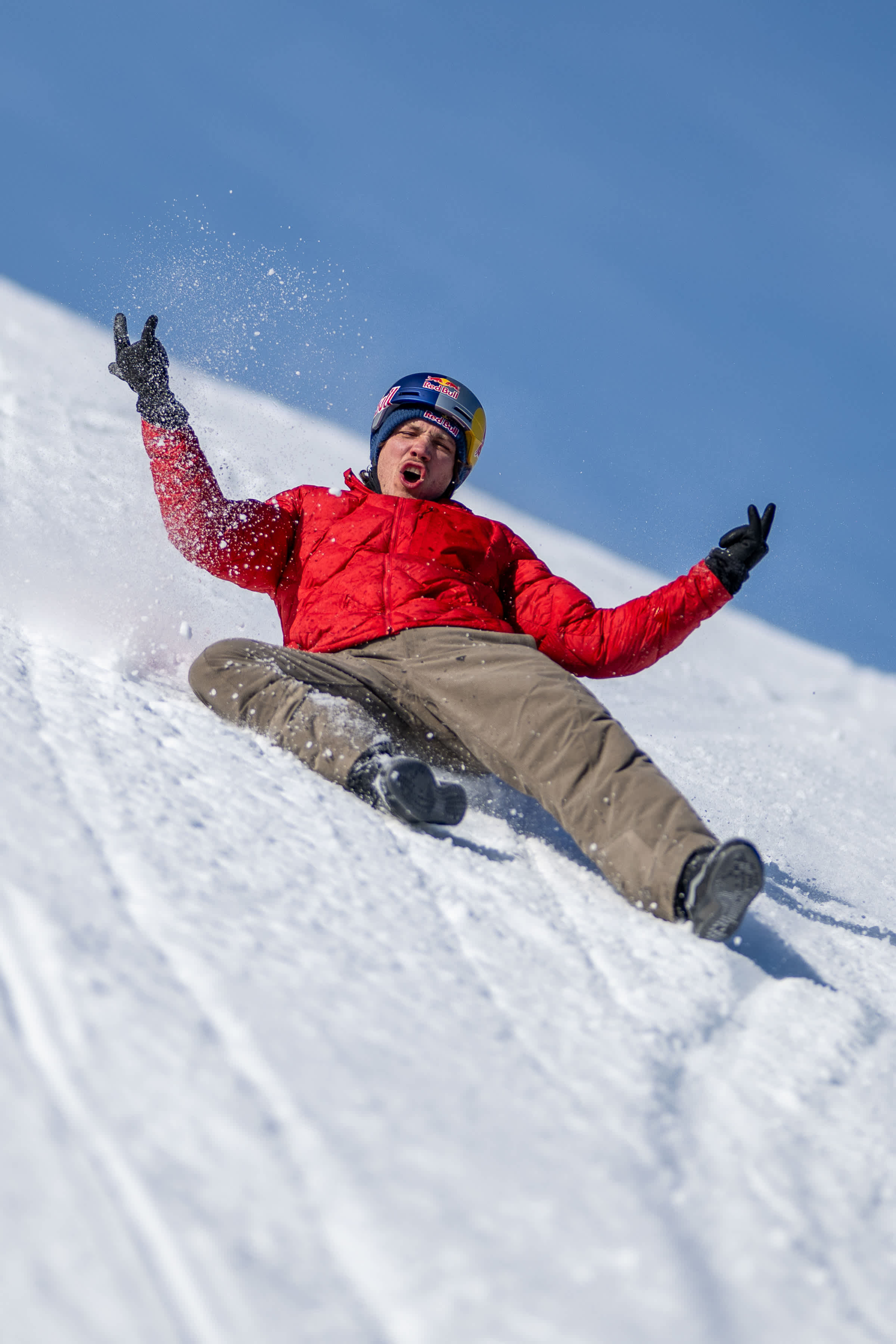 Von dort ging es per Vier-Meter-Sprung auf das Rooftop des Starthauses. „Das war wie in einem Actionfilm – meine James-Bond-Hommage. Ein echtes Once-in-a-Lifetime-Erlebnis“, erinnert sich Jason Paul. Danach nutzte er die Tribüne direkt an der Mausfalle für seine Parkour-Moves und slidete den eisigen Steilhang hinunter.