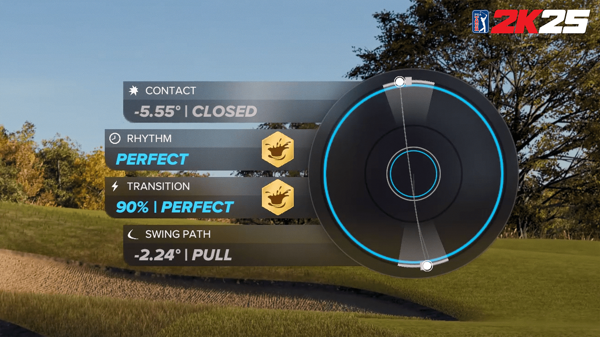 Aus spielerischer Sicht zeigt sich PGA Tour 2K25 detailverbessert. Vor allem bei den Schlag-Varianten wartet der neueste Ableger mit einer spannenden Innovation auf, der sogenannten EvoSwing-Mechanik.