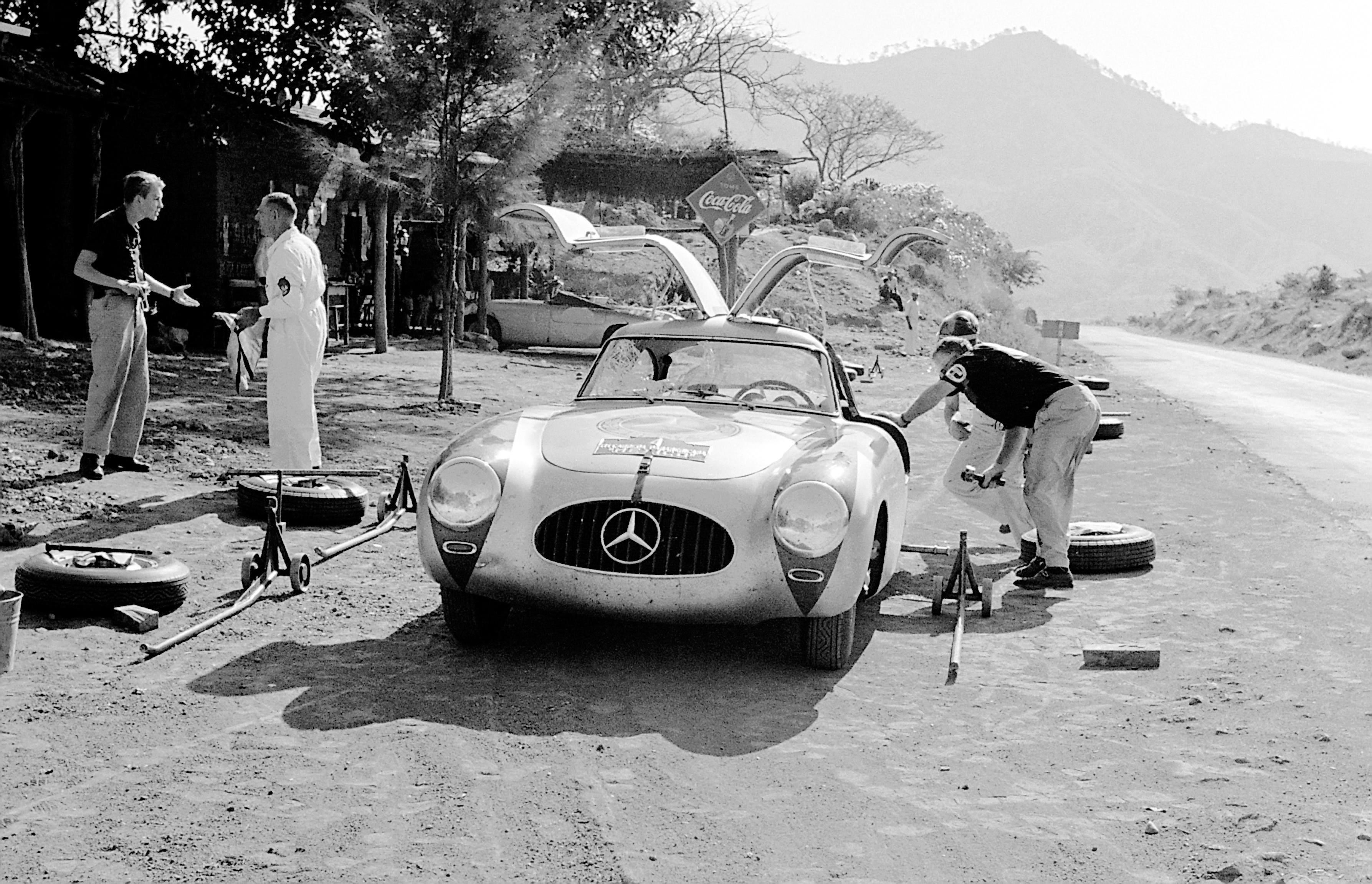 1952 schickte Mercedes ein Team von drei Wagen – den 300SLs – nach Mexiko mit dem Ziel, den Konkurrenten Ferrari und Lancia den Sieg bei der Carrera Panamericana streitig zu machen.