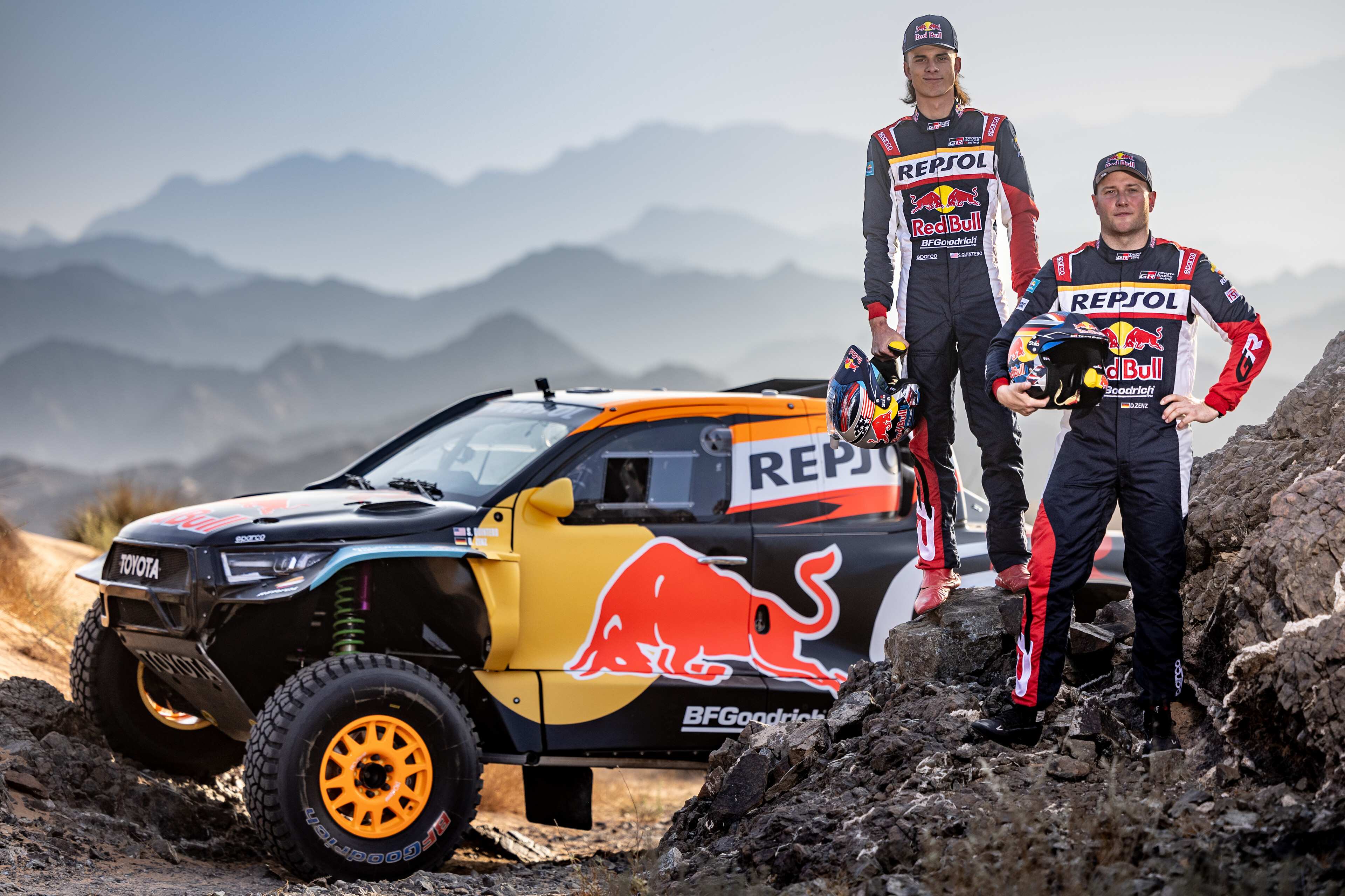 Quintero wird in seinem Toyota GR DKR Hilux von Beifahrer Dennis Zenz begleitet, wenn die Absolventen des Red Bull Off-Road Junior Teams ihre fünfte gemeinsame Dakar in Angriff nehmen.