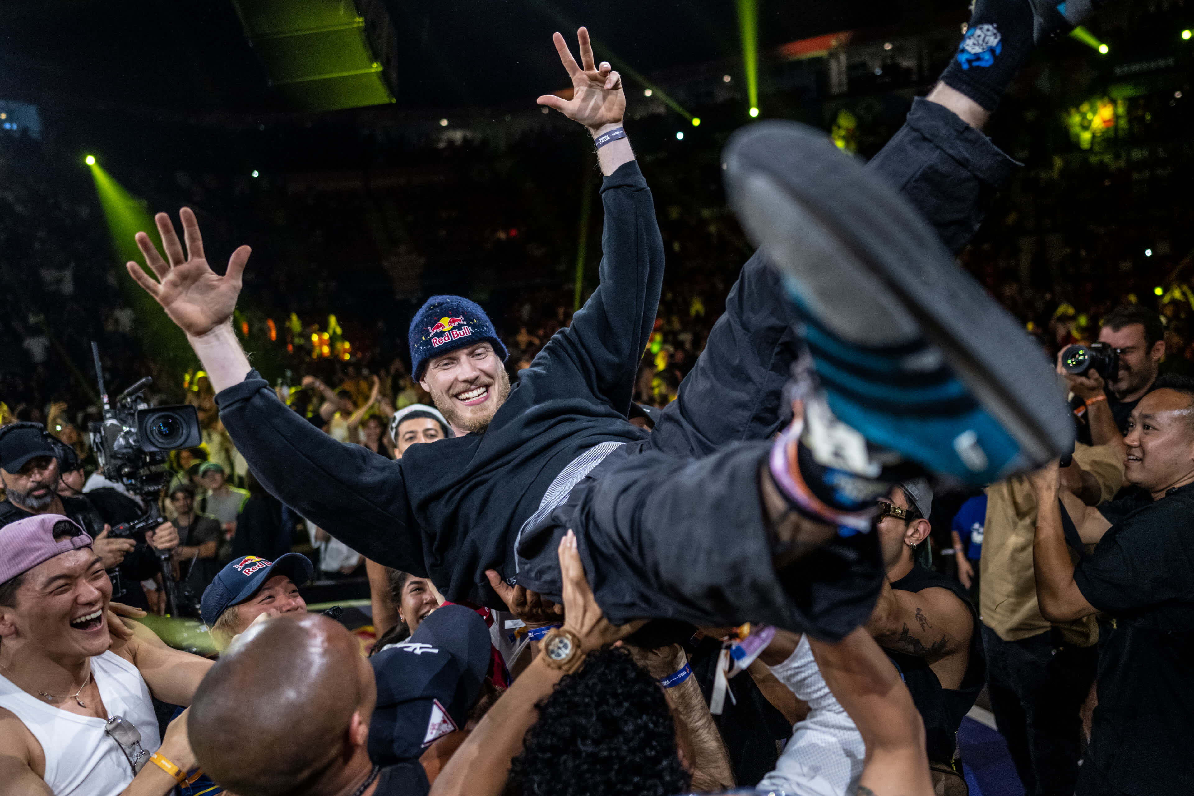 Apropos Geschichte schreiben: B-Boy Menno hat an diesem Abend etwas geschafft, das vor ihm noch niemandem gelungen ist. Mit Red Bull BC One World Final Triumphen in den Jahren 2014, 2017, 2019 und nun auch 2024 ist B-Boy Menno der erste Breaker, der den Red Bull BC One World Final Titel viermal gewann. „Ich fühle mich unglaublich, bin überglücklich und noch immer etwas sprachlos. Dieser Titel bedeutet mir viel, da es mein vierter Gürtel ist und niemand sonst vier Gürtel hat. Der Erste zu sein, der diesen Meilenstein erreicht, ist unglaublich“, jubelte B-Boy Menno.