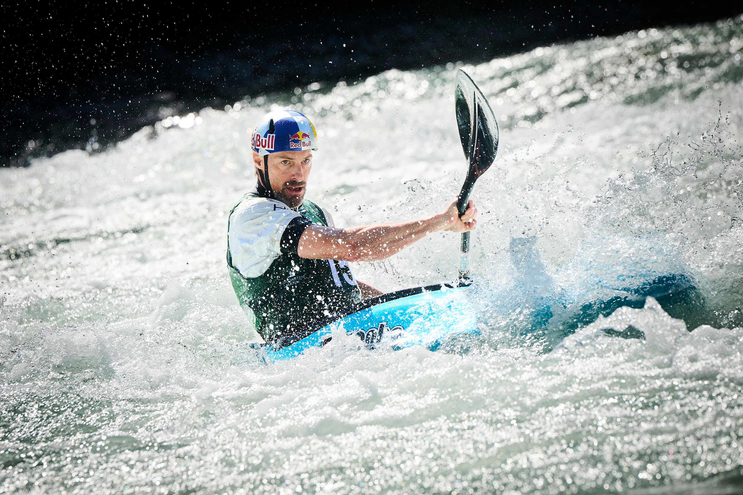 Jetzt warteten 32 Up-und Downhillkilometer über 1.600 Höhenmeter auf die Mountainbiker:innen. Und dort pushten sich die drei Team Kolland Topsport Crews gegenseitig zu Spitzenleistungen. Der Brasilianer Ulan Galinski vom Team Kolland Topsport Elite startete als Erster in die dritte Disziplin – und konnte die Führung auf der spektakulären Mountainbike-Strecke wieder ausbauen und einen kleinen Zeitpolster gegenüber den schärfsten Verfolgern herausholen. Für Furore sorgte kurz danach Arne Janssens aus Belgien, der mit einer grandiosen Disziplinen-Bestzeit von 01:41:54 Stunden sein Team Sport Auer Tuffbad Almwellness wieder näher an das Podium heranbrachte, bevor es auf den finalen Kajak-Abschnitt ging.