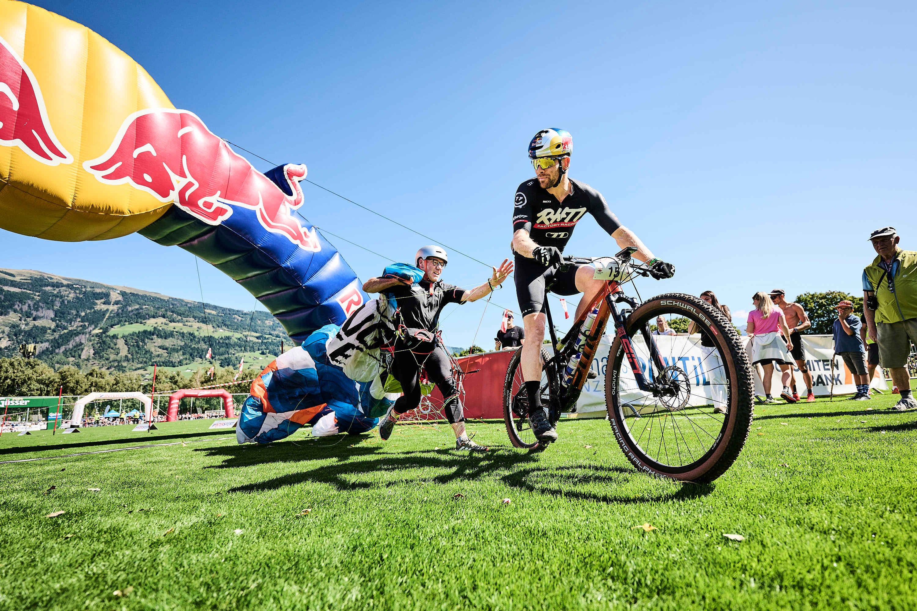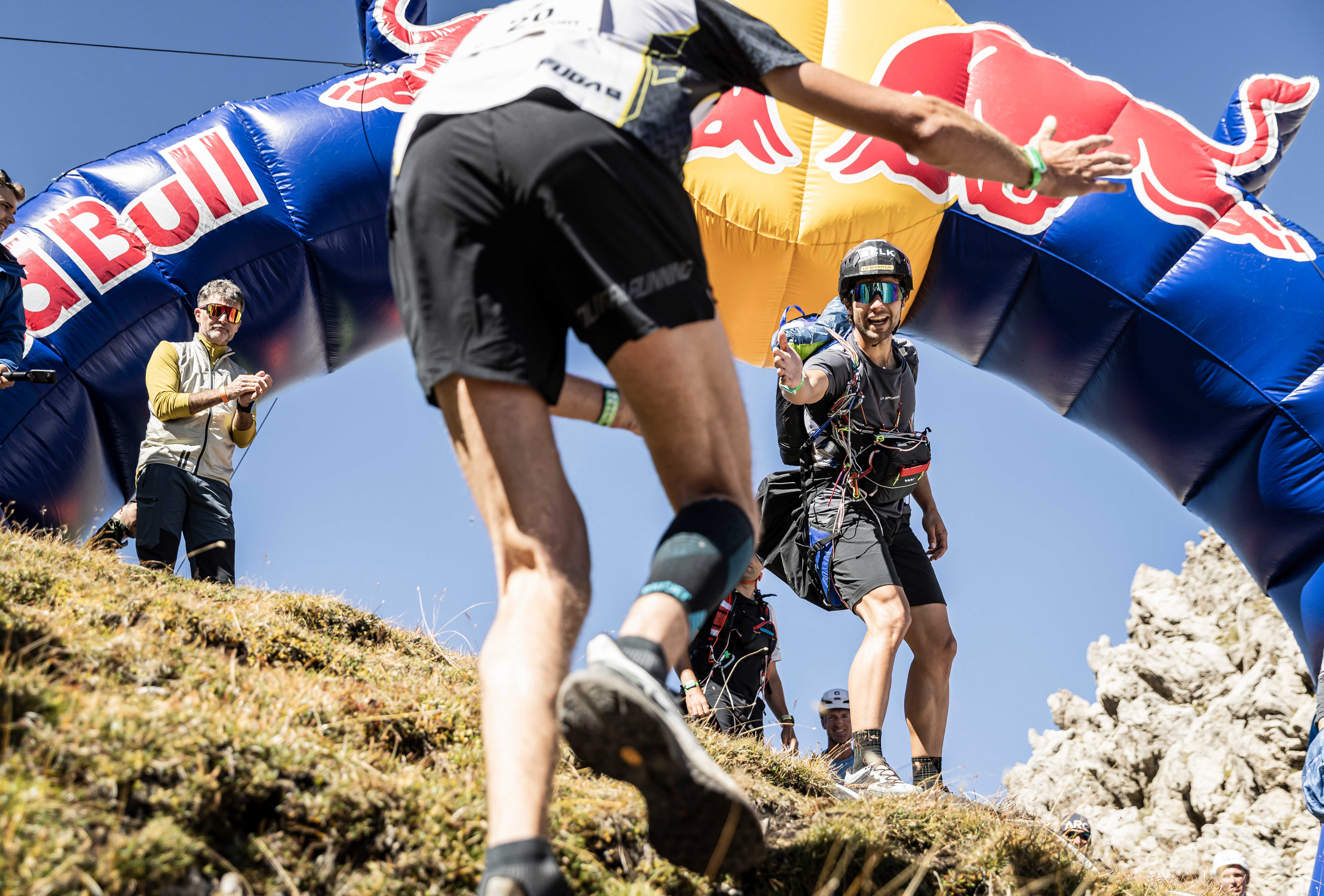 Nachdem die Bergläufer:innen über den Goggsteig nach 12 steinigen Kilometern auf 2.441 Metern Seehöhe mit ihren Teamkolleg:innen abschlagen, beginnt für die Pilot:innen mit ihrem Gleitschirm ihr Rennen bis zur rasanten Punktlandung im Lienzer Dolomitenstadion. Heuer ging Red Bull X-Alps Sieger Aaron Durogati für das Team Kolland Topsport Elektro Bauer als Favorit auf den Disziplinen-Sieg an den Start – und konnte dieser Rolle mehr als gerecht werden. Er war mit seinem Gleitschirm nicht zu schlagen und klatschte im Lienzer Dolomitenstadion nach nur 25:41 Minuten mit Mountainbiker Marek Rauchfuss ab – so schnell war noch nie ein Paragleiter in der langen Geschichte des Red Bull Dolomitenmann. Er brachte sein Team mit dieser Glanzleistung wieder ganz nah an die Spitzenreiter heran.