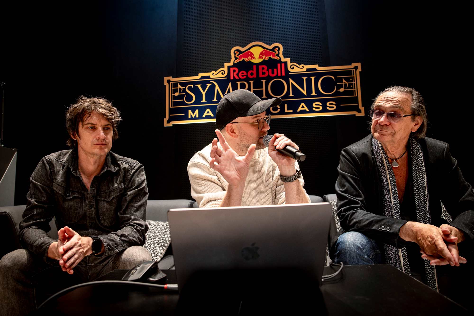 Neben der Aufregung der Teilnehmer:innen lag aber auch eine Prise Nervosität in der Luft, denn für Christian Kolonovits und Camo & Krooked war es auch eine ganz spezielle Premiere: Bei der Masterclass gab es zum allerersten Mal einzelne Tracks aus der neuen Red Bull Symphonic Set-List zu hören. Damit traf das Ergebnis ihres Schaffens zugleich erstmals außerhalb des Studios auf fremde Ohren – ein besonderer Moment, selbst für die Meister. Ohne allzu viel zu spoilern: Das wird genial!