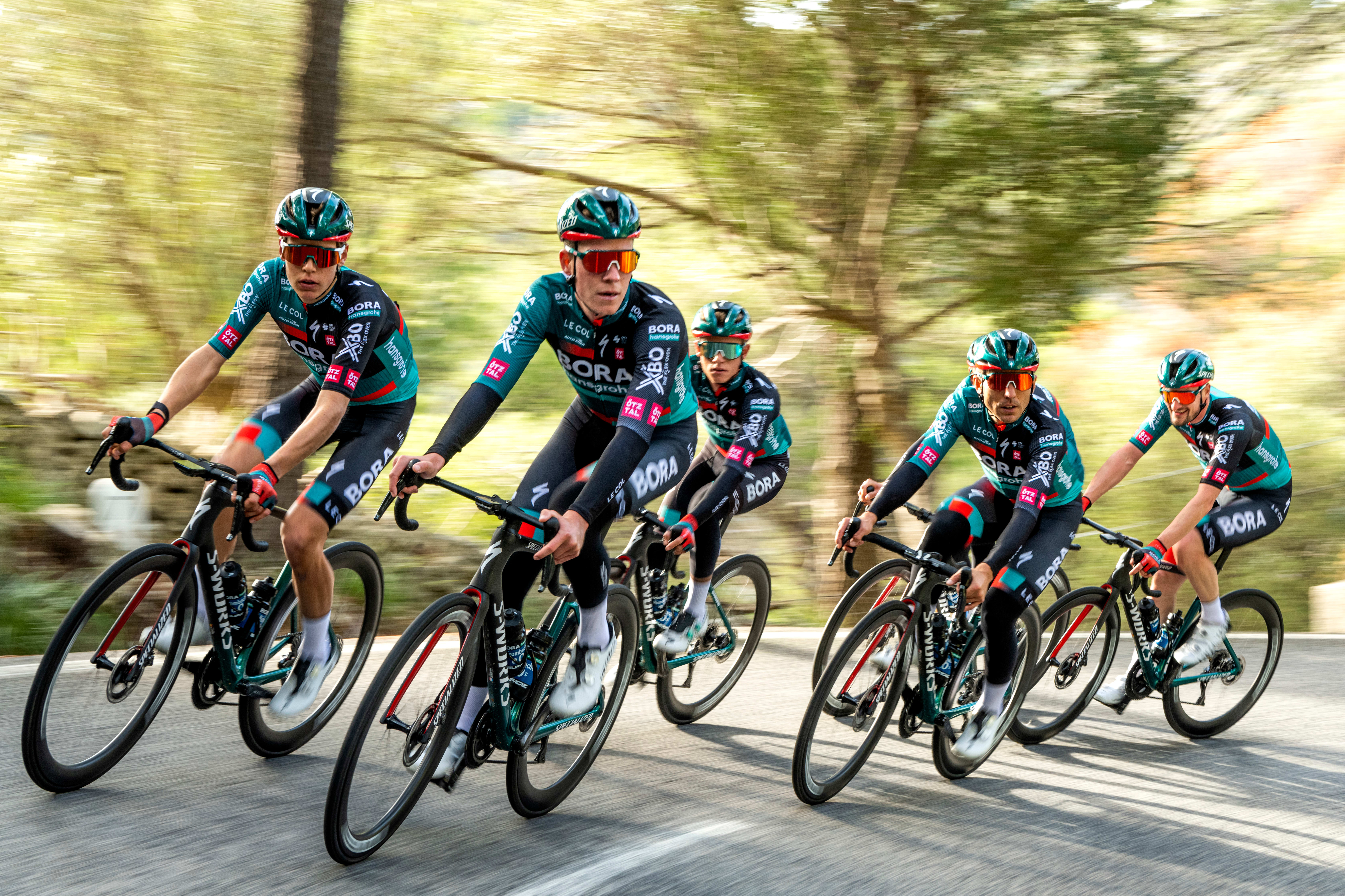 Toni Palzer von Red Bull - BORA - hansgrohe checkt die Schaltung am Bike.