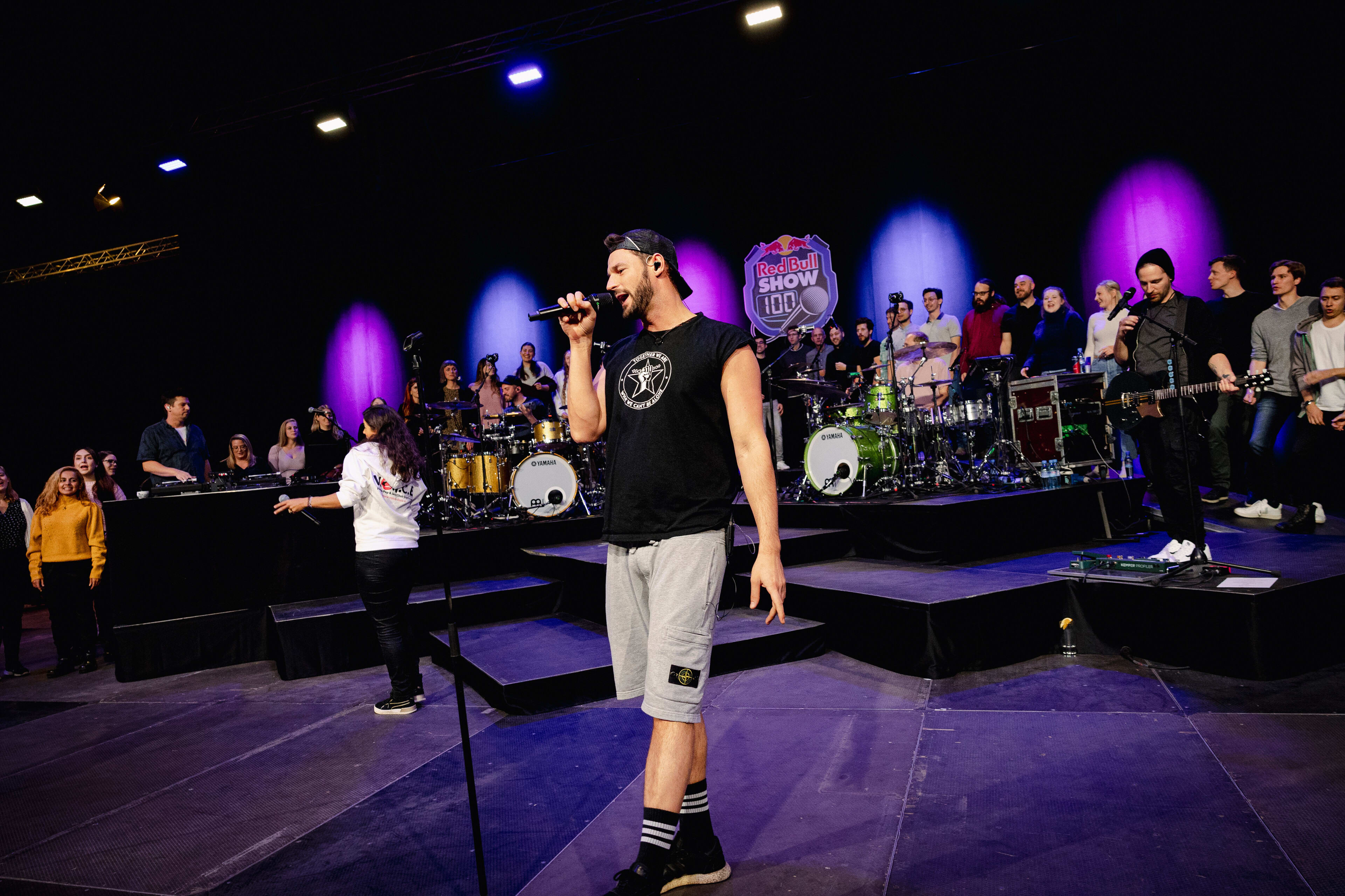 Aber hier hört der Spaß nicht auf, denn es wäre nicht Red Bull Show 100 ohne einer letzte Challenge. In der geheimnisvollen Challenge-Box fanden Christopher, Daniel und Paul die aufregende Nachricht, dass sie einen weiteren Song zusammen mit einem ganz besonderen Gast performen dürfen.
